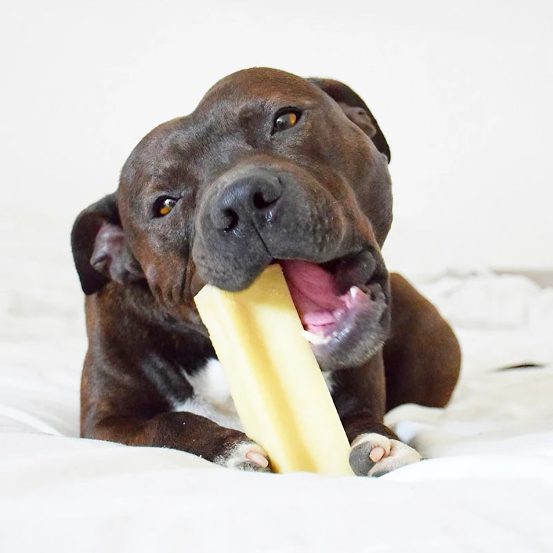 Sa texture dense contribue à l'hygiène dentaire en nettoyant les dents pendant la mastication. Ce bâtonnet occupe les chiens et limite les comportements indésirables, comme mâchouiller des chaussures ou des meubles.