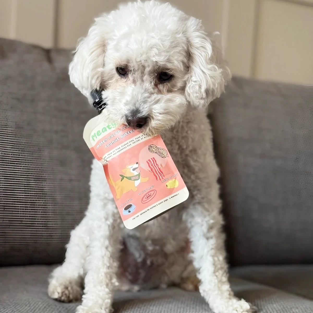 Le beurre de cacahuète pour chien Meaty Licks au bacon est une délicieuse friandise qui allie saveur et praticité. Grâce à son format gourde refermable, il est facile à emporter et parfait pour les activités extérieures, l’éducation ou pour remplir des jouets.