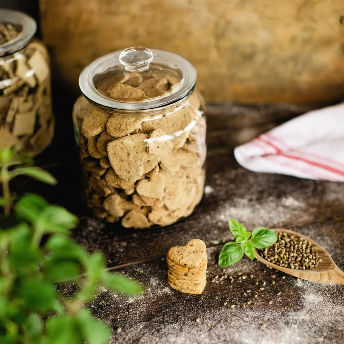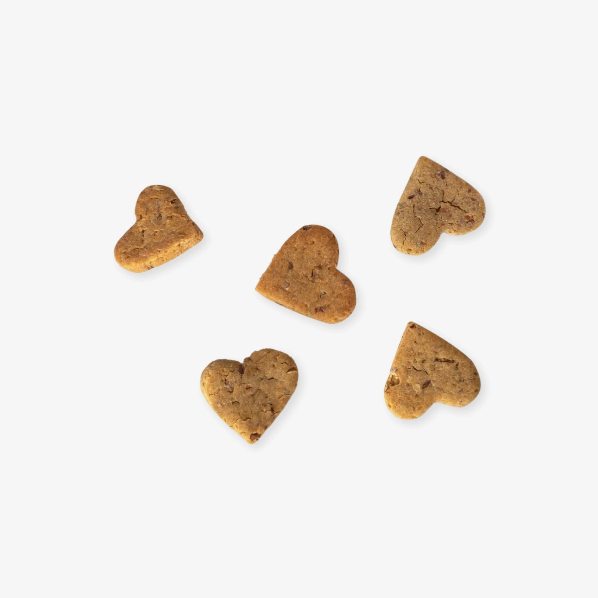 Les biscuits au poulet et aux carottes de Cooka's Cookies sont de petites friandises en forme de cœur, fabriquées artisanalement au Portugal.