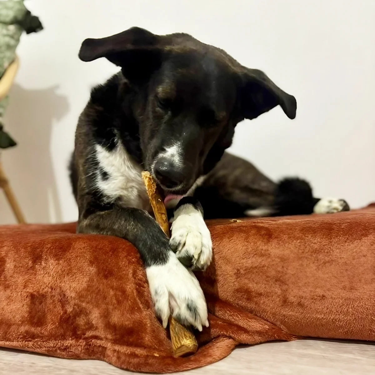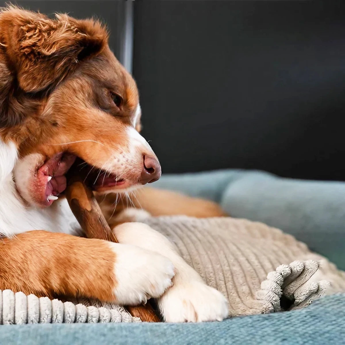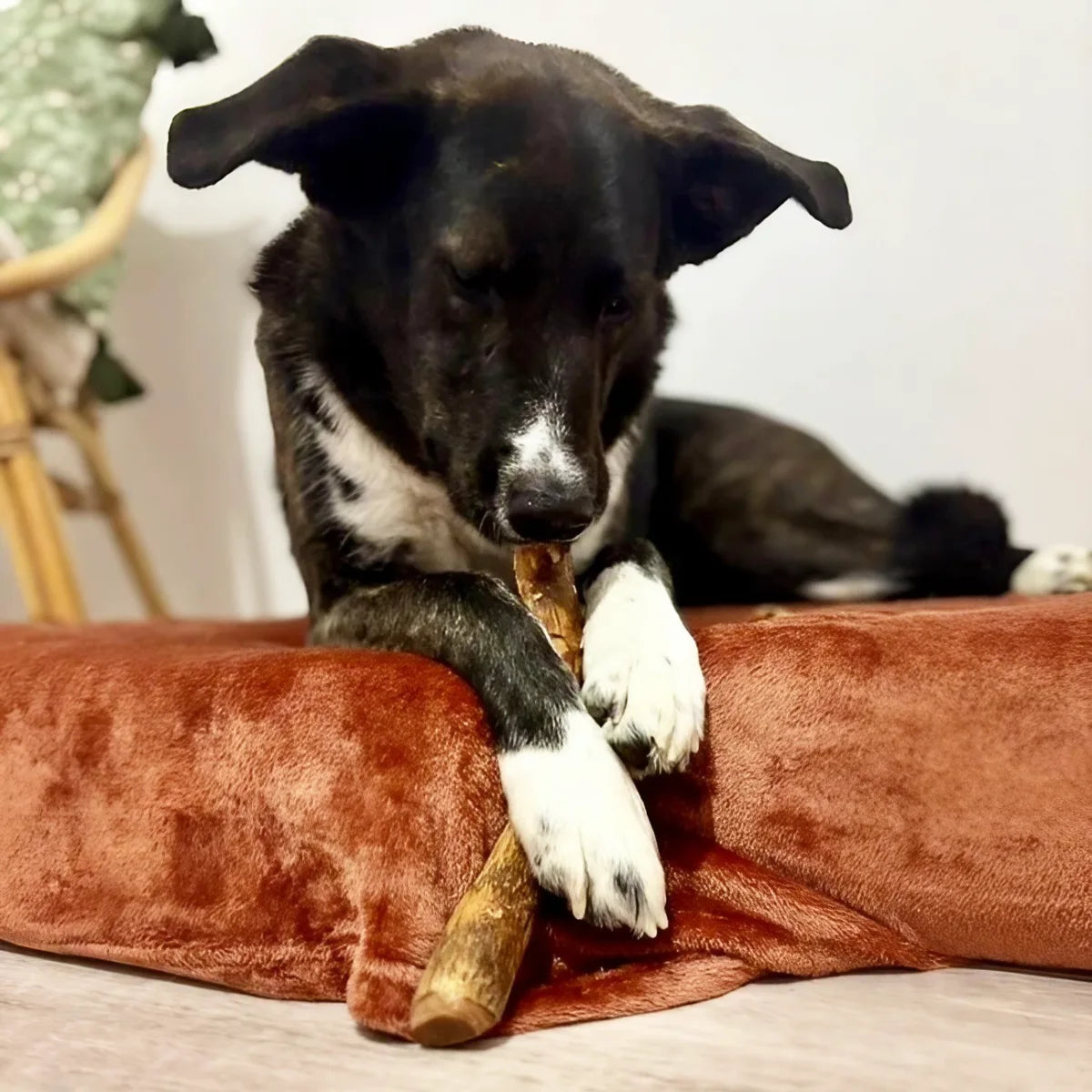 Ce bois ne s’écharde pas lors de la mastication. Il aide aussi à réduire les comportements destructeurs chez les chiens qui mâchent des objets inappropriés.