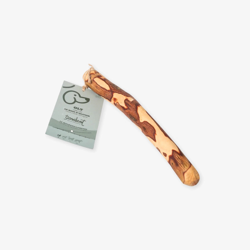 Le bois d'olivier est une alternative pour les chiens qui adorent mâcher du bois. Plus dur que la plupart des bois naturels, l’olivier est un bois à grain fin. Séché, poncé, puis légèrement infusé à l’huile d’olive vierge, il offre une mastication saine et satisfaisante. Ce bois est sans odeur.