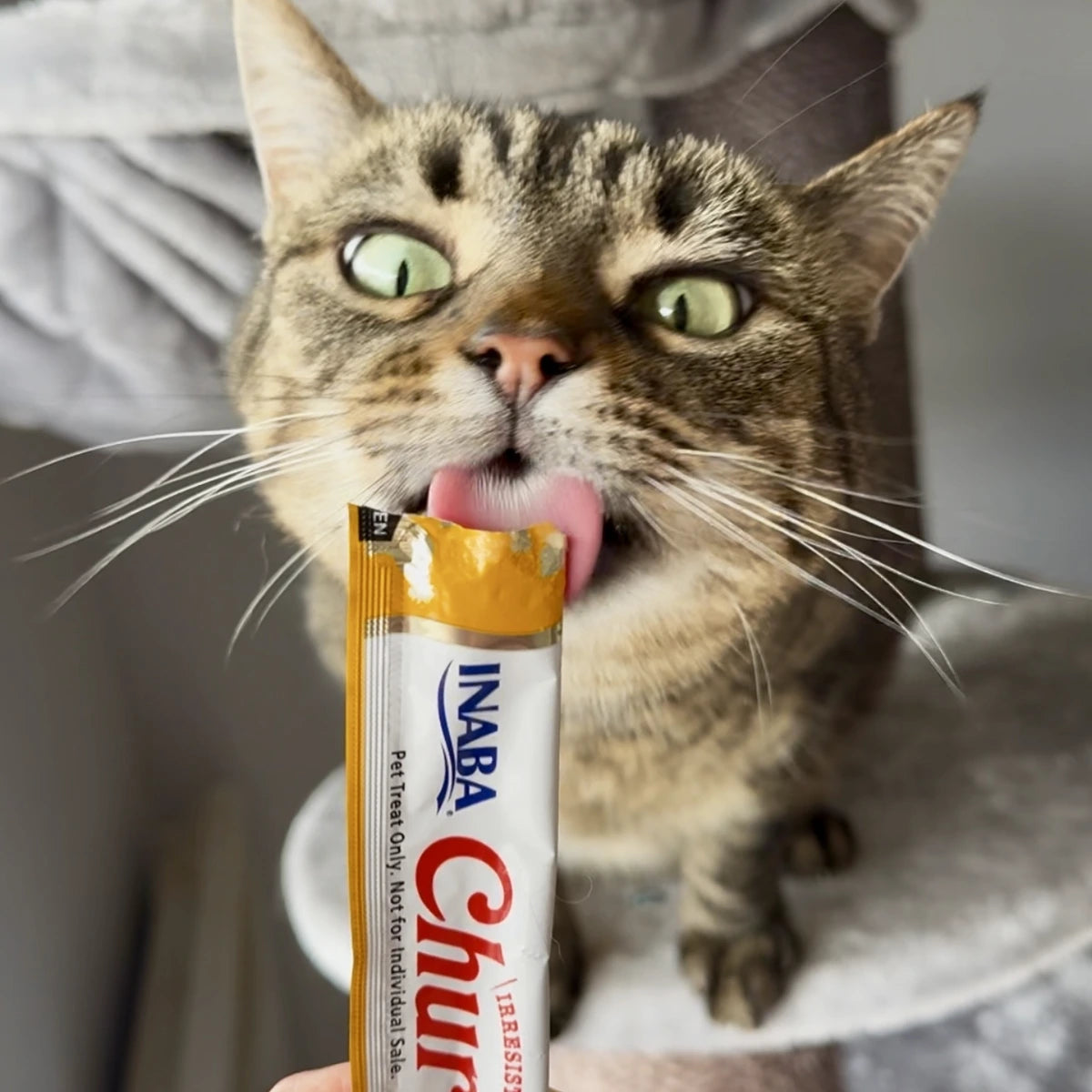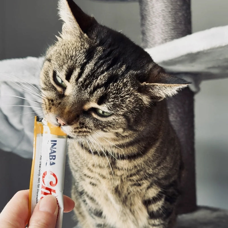 La friandise pour chat Churu poulet de Inaba est une purée crémeuse que les félins adorent.