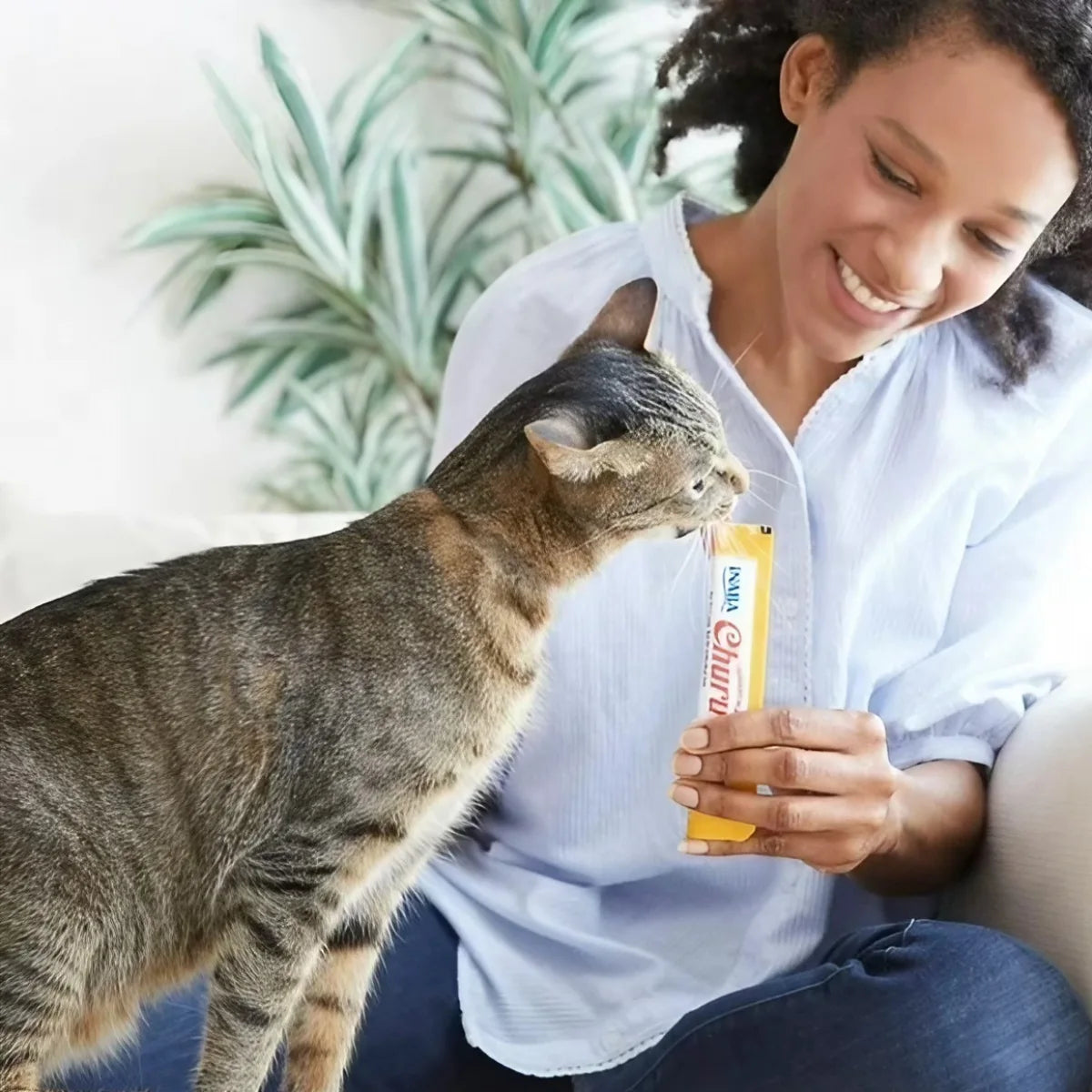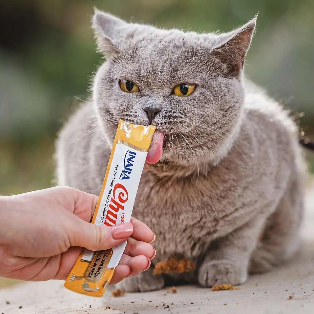 Les friandises Churu au poulet pour chat sont des crèmes à lécher délicieuses et hydratantes. Faibles en calories, elles sont parfaites pour faire plaisir au chat, même le plus difficile.