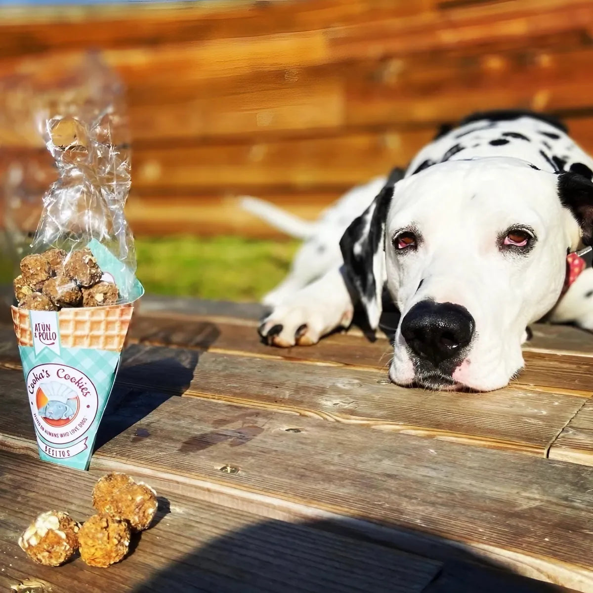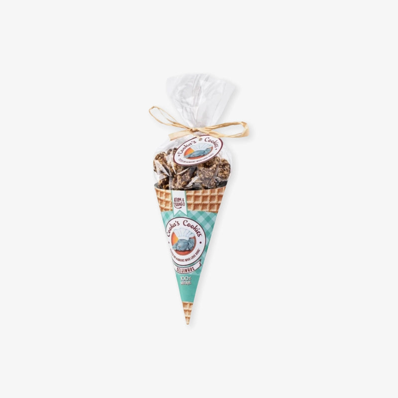 Les friandises au poulet et thon de Cooka's Cookies sont aussi appelées "Beijinhos", qui signifient "petits bisous" en portugais. Ce sont de petites friandises pour chien, présentées dans un cornet de glace.