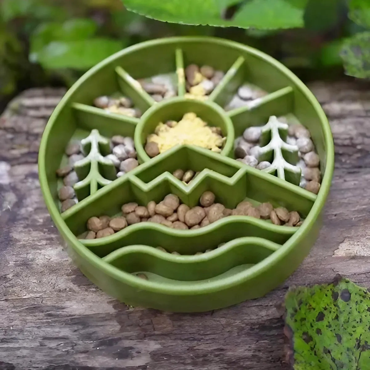 Dotée de compartiments de différentes formes et tailles, elle permet de remplir les espaces avec des croquettes, de la ration BARF ou de la nourriture humide. Les aliments peuvent être combinés ou placés dans des sections séparées.