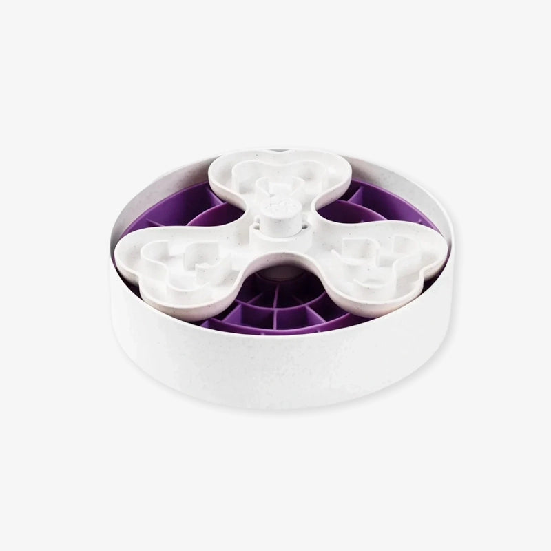 La gamelle anti-glouton Swirl de Puzzle Feeder aide le chien à ralentir la vitesse à laquelle il mange. Son tapis en spirale crée un vrai parcours pour les croquettes, et son plateau tournant en Y ajoute une difficulté en les cachant partiellement.