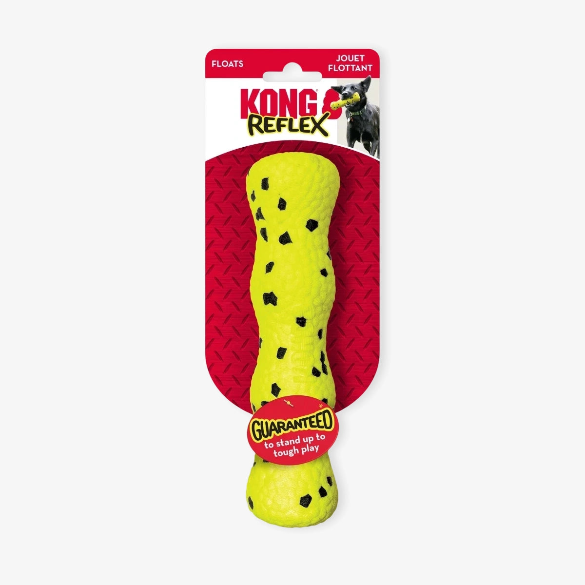 Le jouet pour chien KONG Reflex Stick est un jeu de lancer et rapporter. Il offre durabilité et flexibilité grâce à son matériau haut de gamme, utilisé dans les semelles de chaussures de course. Solide et résistant, il supporte de longues séances de jeu et présente des propriétés d'auto-régénération, notamment les marques de dents.