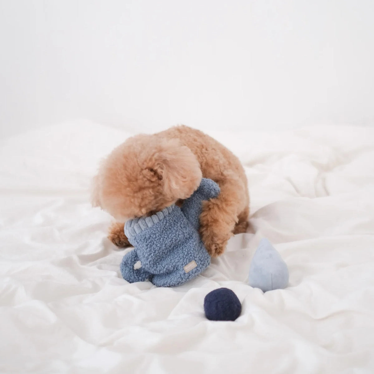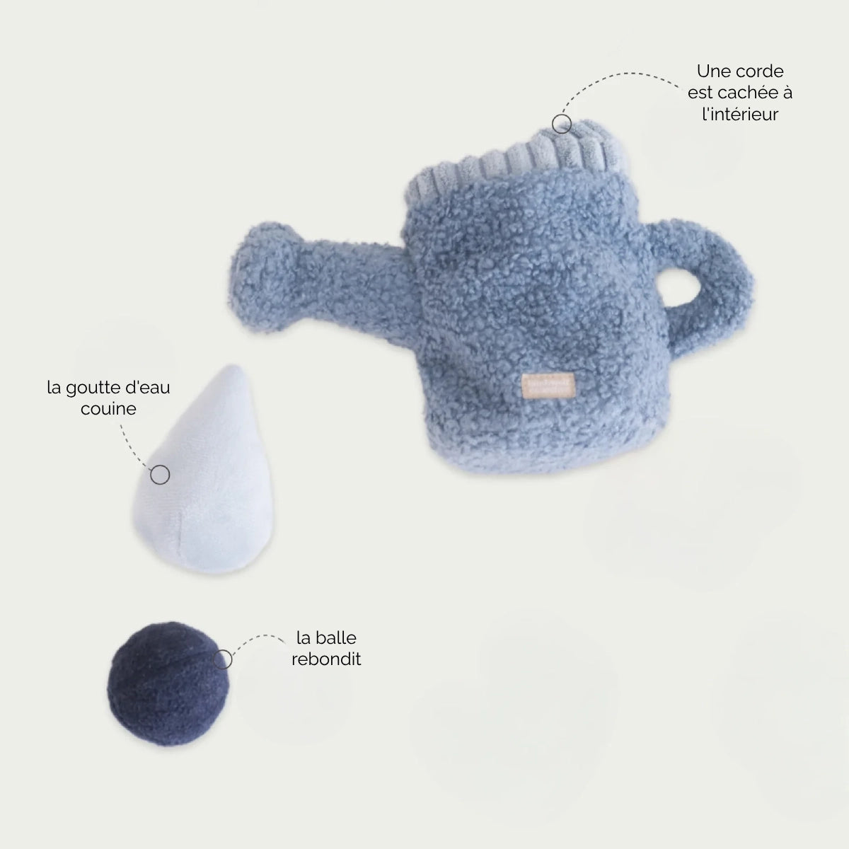 L’arrosoir de Lambwolf Collective est un jeu de fouille pour chien 3 en 1. Il contient une corde en coton naturel cachée à l’intérieur, une balle rebondissante recouverte de polaire douce et résistante, ainsi qu’une peluche en forme de goutte d’eau qui couine.