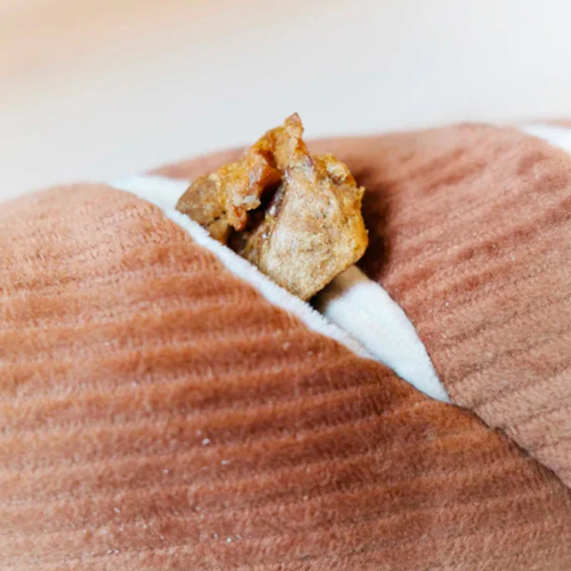 Ce jeu d'occupation nosework offre au chien une expérience multisensorielle. Les couineurs intégrés à chaque extrémité engagent activement son audition. Le crépitement distinctif de l'emballage apporte une nuance sonore supplémentaire.