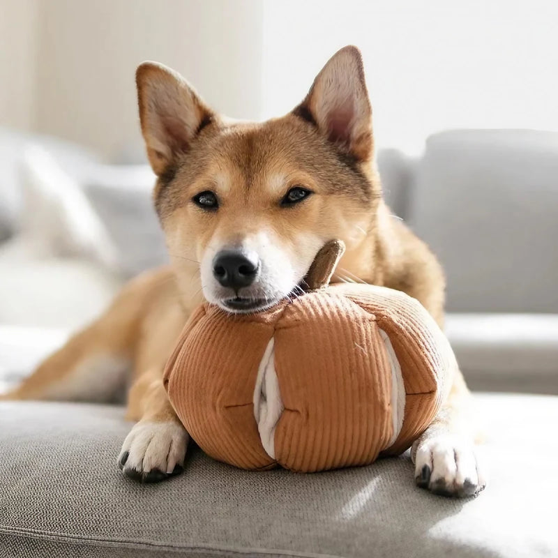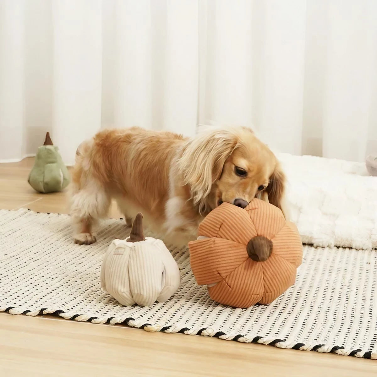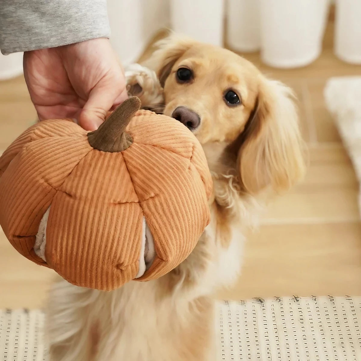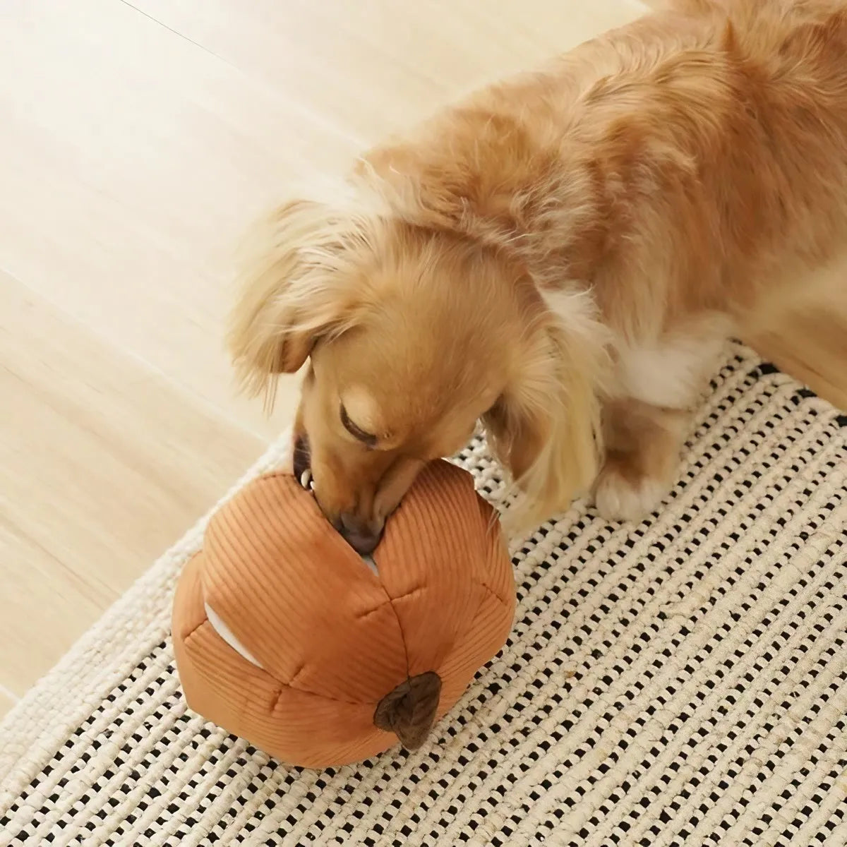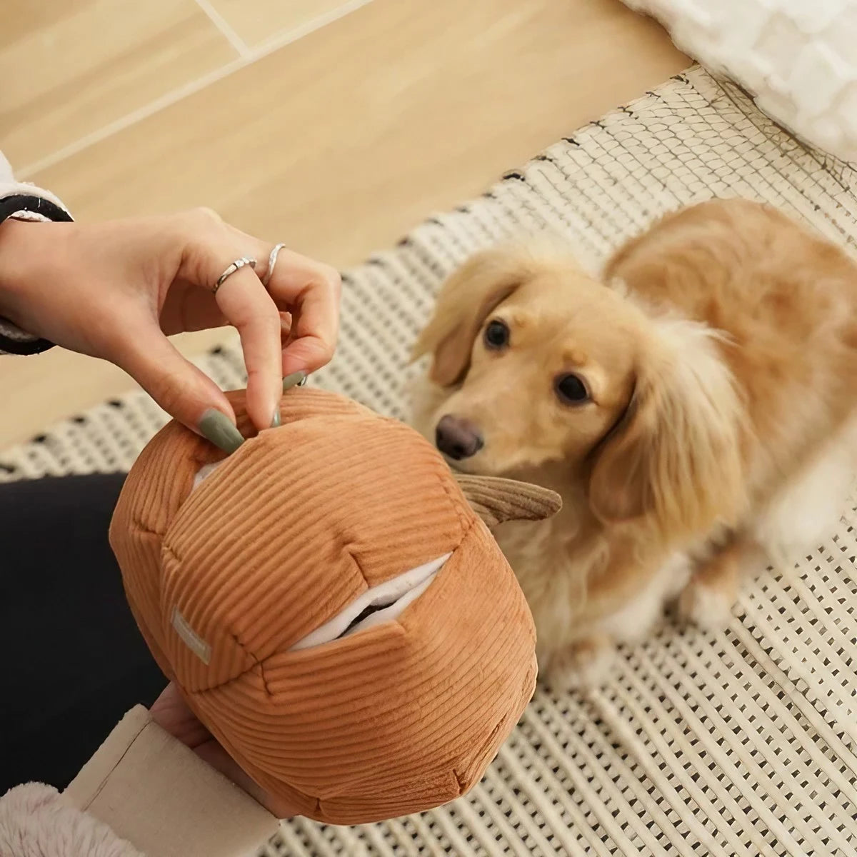 Le Cinderella de Lambwolf Collective est un jeu de fouille pour chien en forme de citrouille.