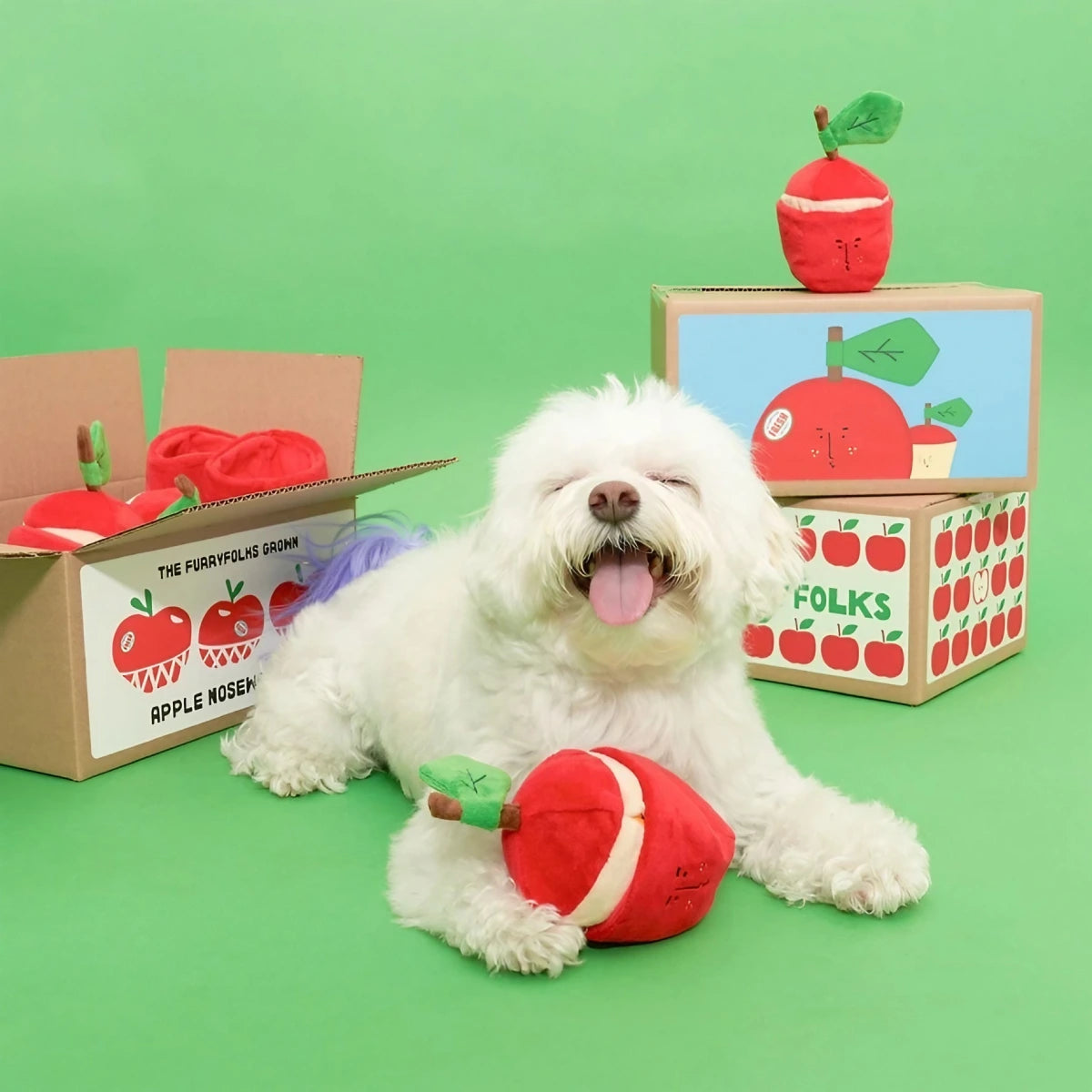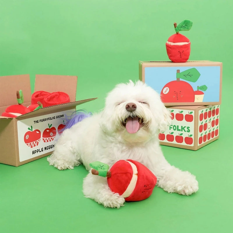 Le jeu de fouille en forme de pomme de The FurryFolks stimule l’odorat et occupe le chien de manière ludique. Il développe son flair et lutte contre l’ennui.