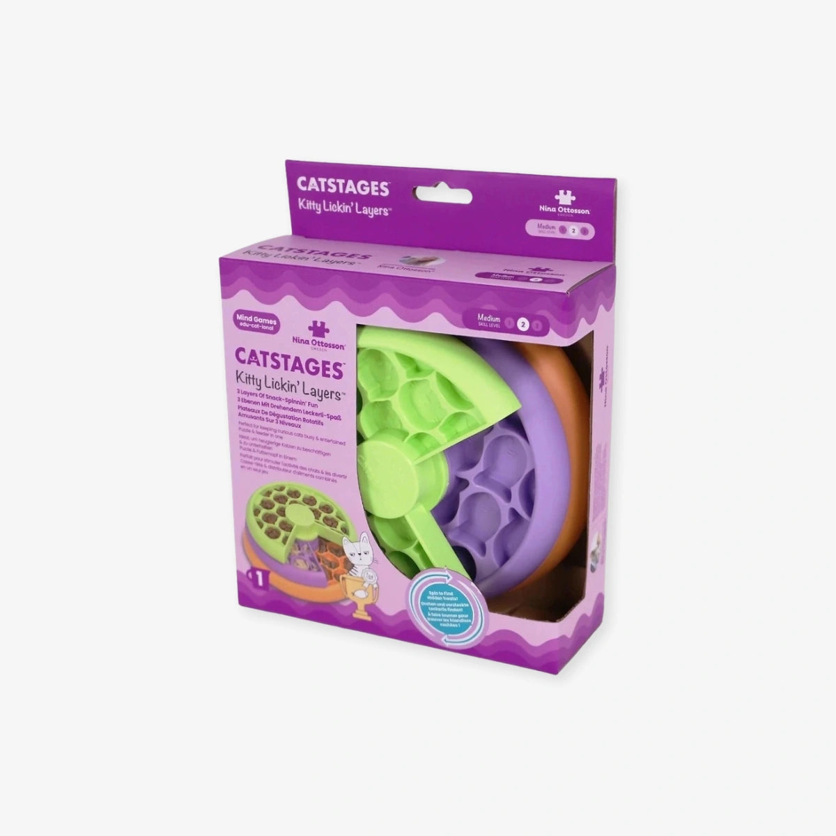 Le Kitty Lickin' Layers est un jeu d'enrichissement pour chat de niveau 2.