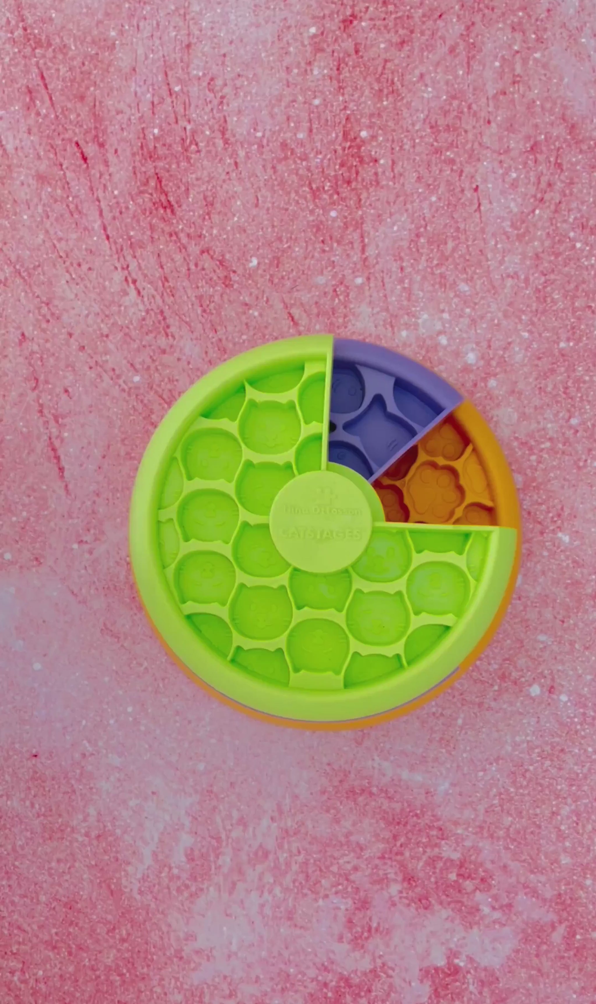 Le jeu d’intelligence pour chat Kitty Lickin’ Layers de Nina Ottosson est un casse tête et distributeur d’aliments combinés en un seul jeu. Il est parfait pour l’occupation du chat, sa stimulation mentale et la régulation de la prise alimentaire.