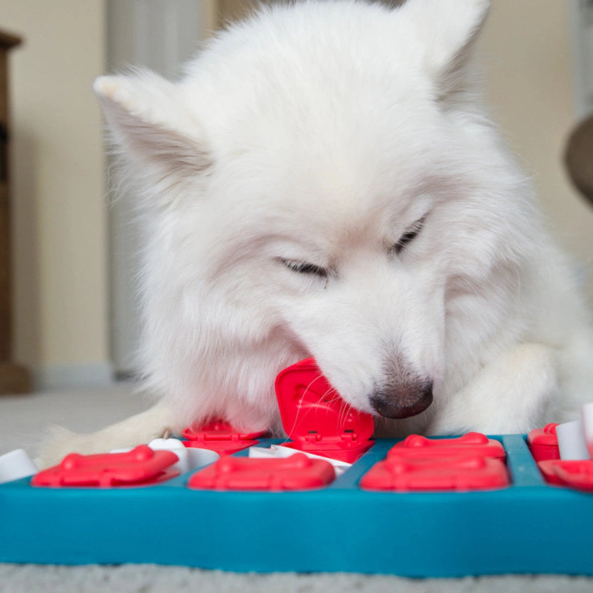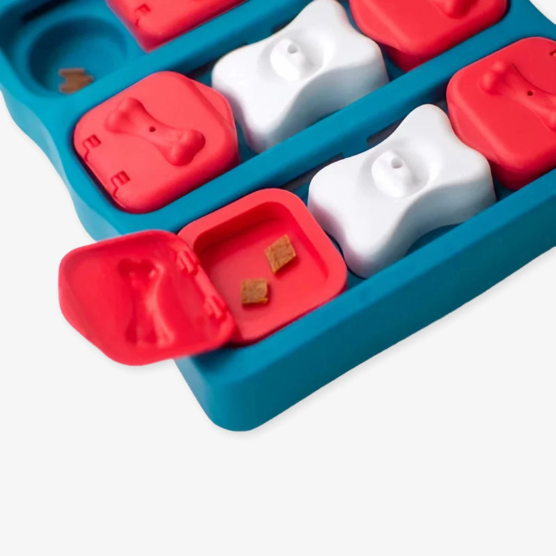 Le dog brick stimule les fonctions cognitives du chien et renforce sa capacité à résoudre des problèmes. En apprenant à déplacer les pièces pour accéder aux friandises, le chien développe sa logique, sa mémoire et sa coordination.