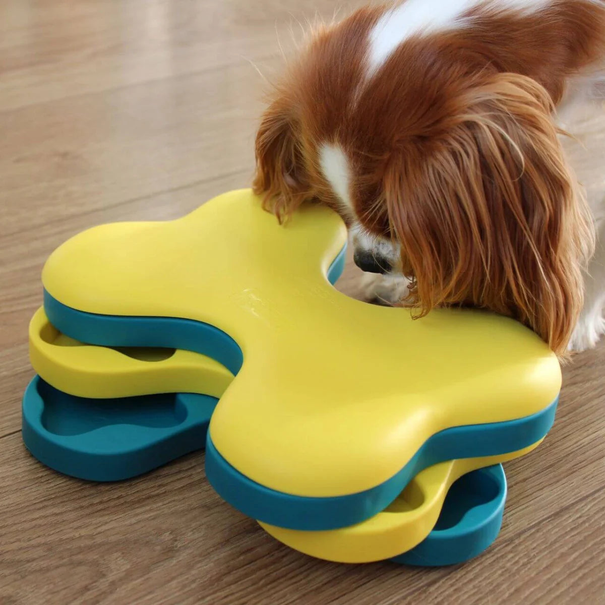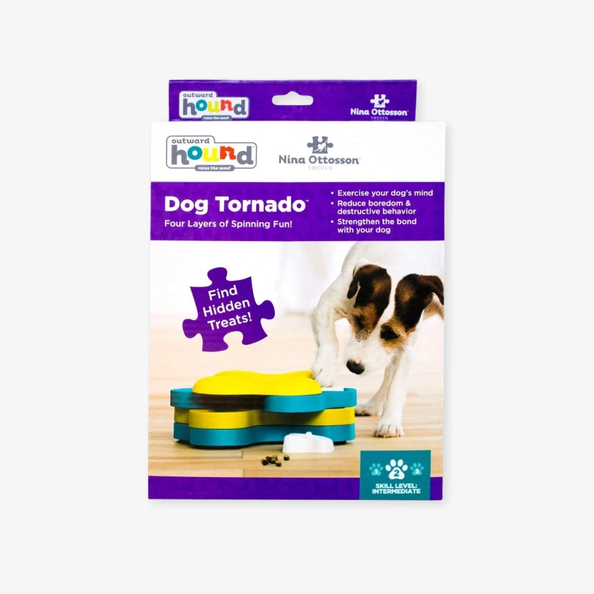 Le Tornado est un jeu d’intelligence et d’occupation de niveau 2 adapté à tous les chiens. Avec ses 4 étages rotatifs et ses 12 compartiments pour friandises ou croquettes, il encourage votre chien à réfléchir et à mobiliser ses capacités cognitives.