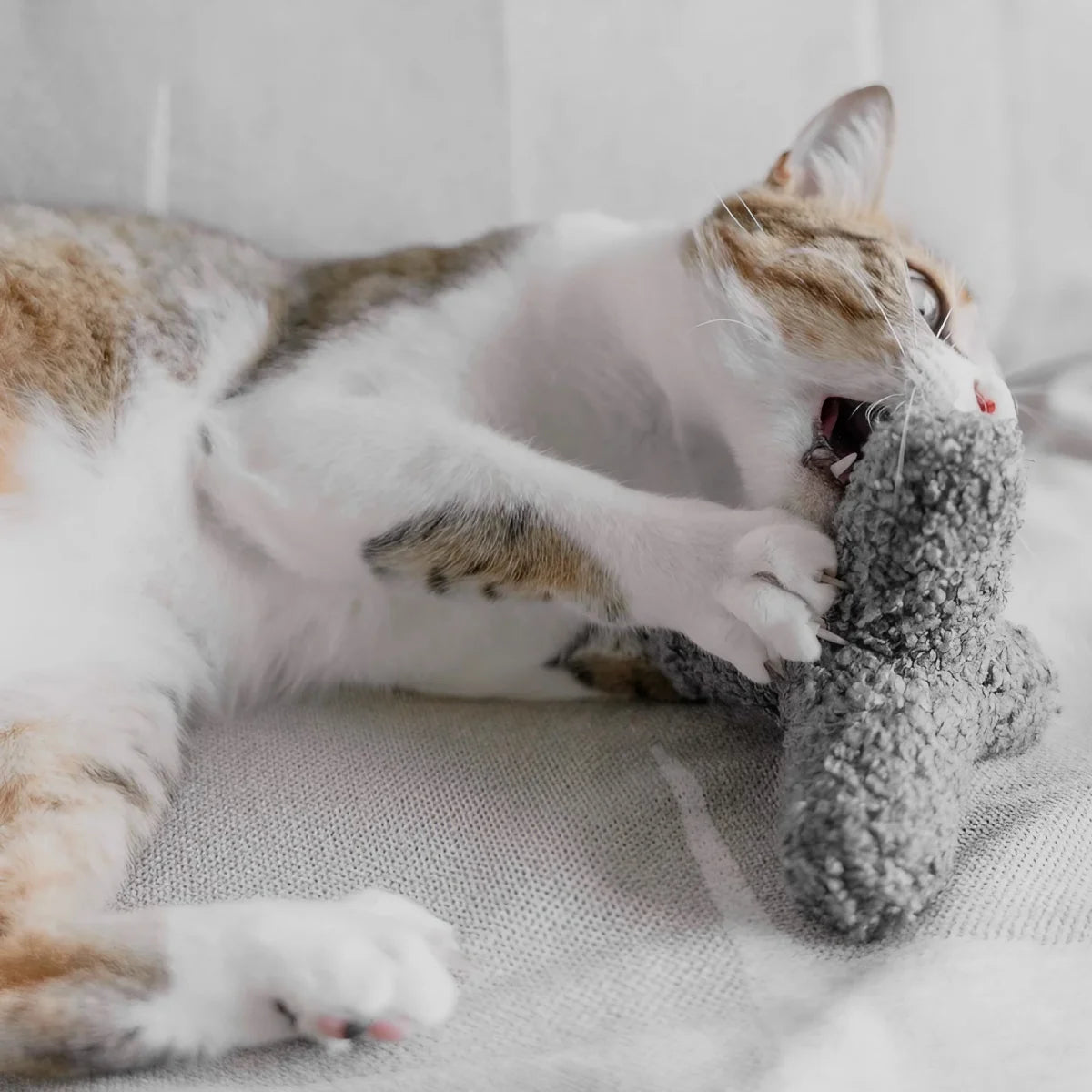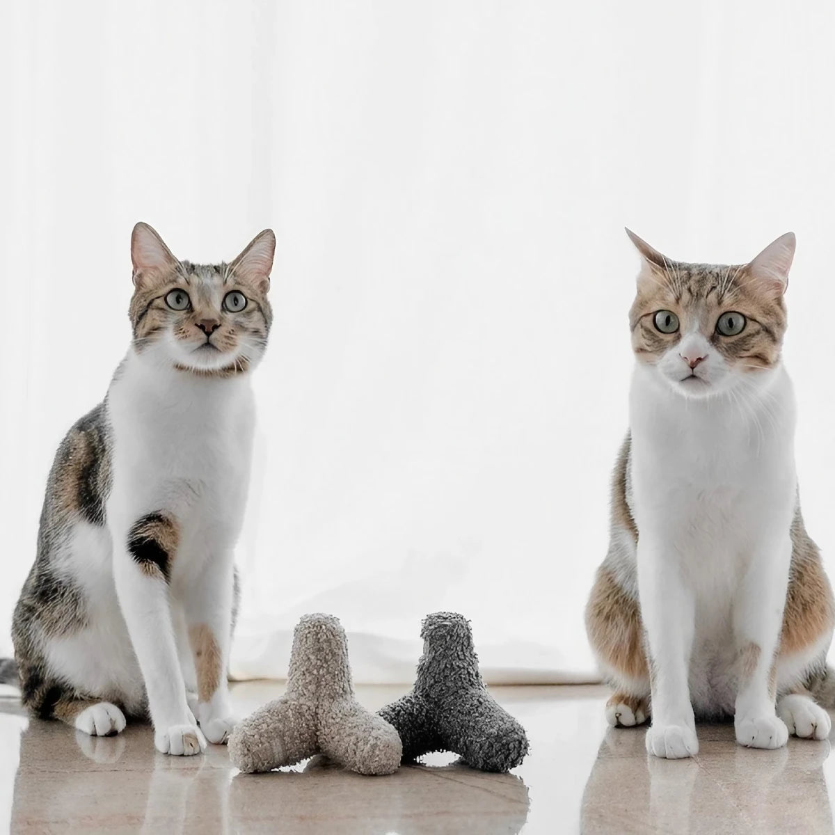 Le jouet pour chat Kitty Breuer de Lambwolf Collective s'inspire des formes minimalistes des tétrapodes. Ce qui offre un design unique qui se tient debout sous tous les angles. Sa structure permet une prise facile avec les pattes et pour les mordillements.