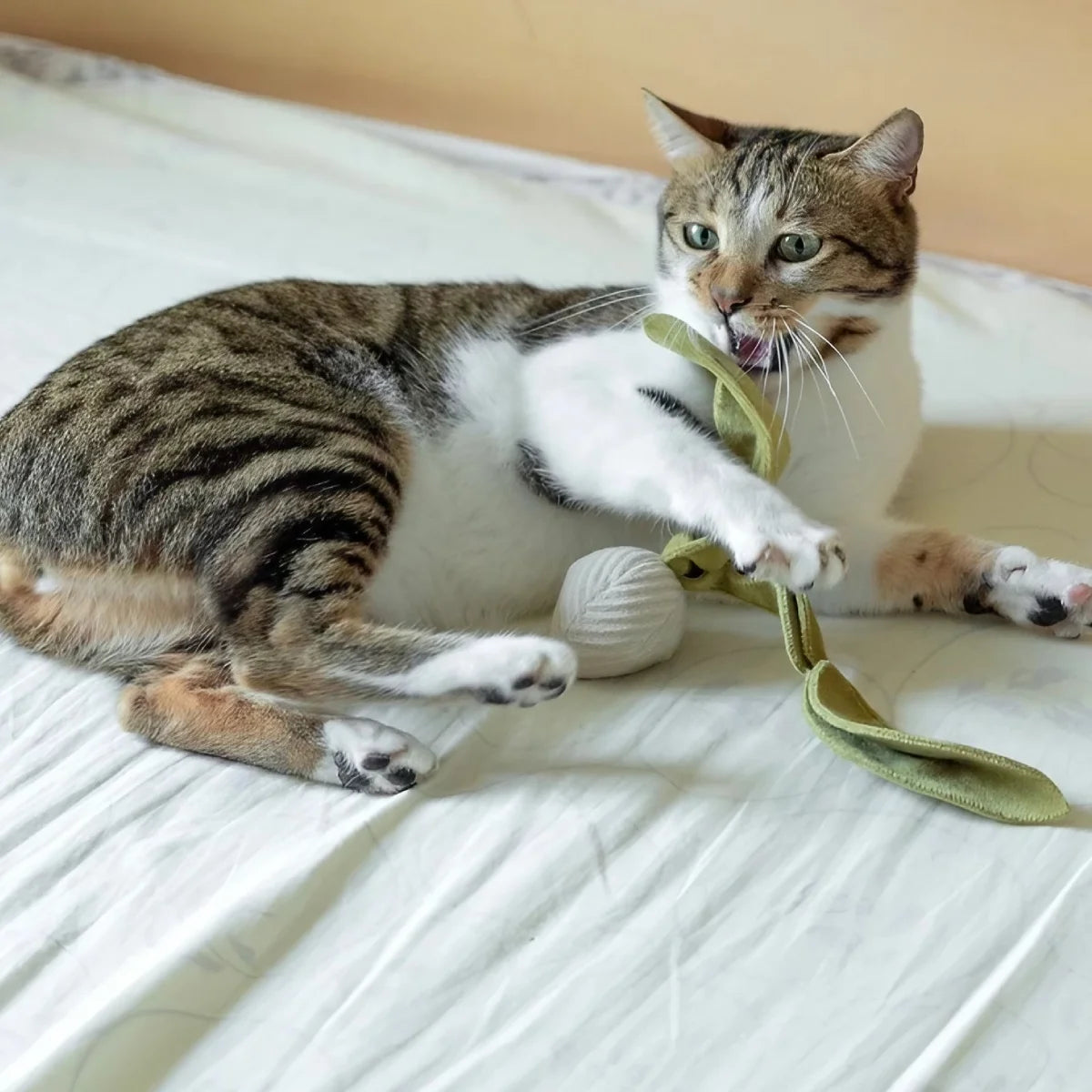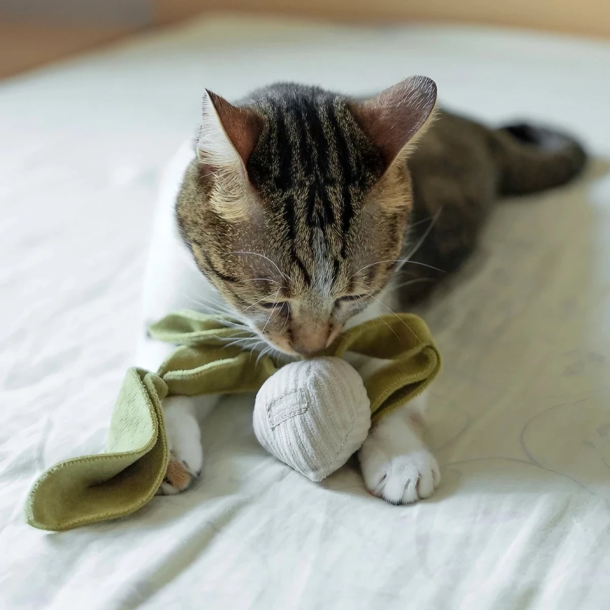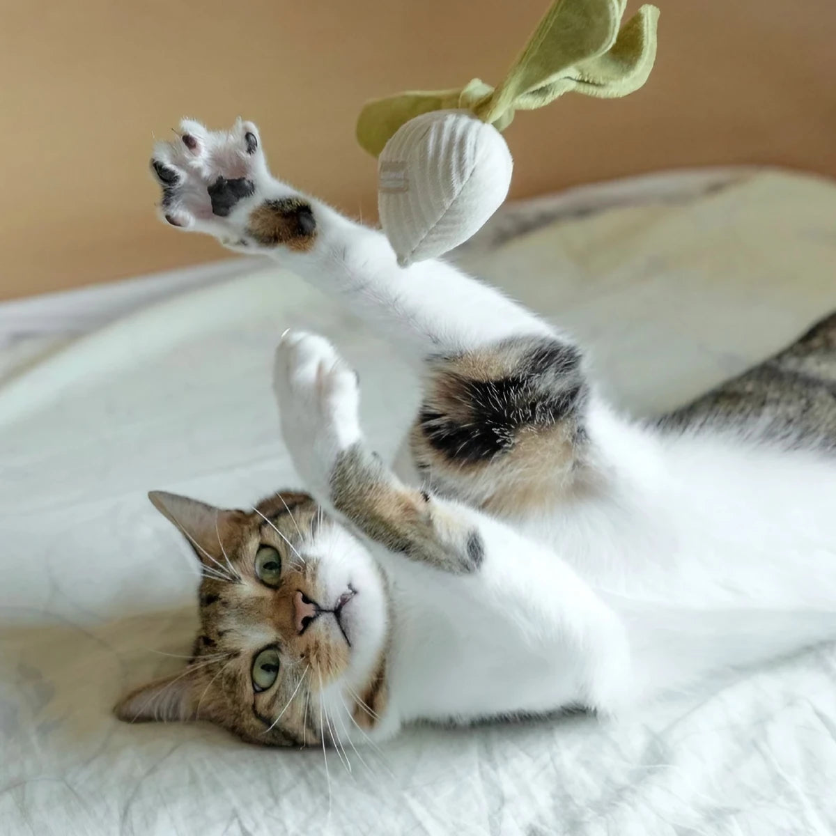 Le radis de Lambwolf Collective est soigneusement conçu pour attirer et stimuler l'instinct de chasseur des félins. Garni d'herbe à chat, il dégage une odeur irrésistible qui incite le chat à se défouler pendant des heures. Les longues feuilles souples ajoutent une dimension interactive : vous pouvez en faire un jouet pompon, parfait pour jouer avec votre chat.