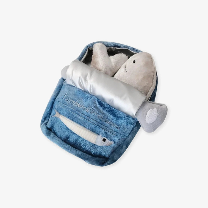 Le jeu d'occupation pour chat sardines de Lambwolf Collective comprend une boîte de sardines avec deux sardines à l’intérieur, remplies de cataire nord-américaine de première qualité. Les sardines peuvent être sorties de la boîte et sont de bonnes tailles pour être tapotées avec les pattes, transportées ou mordillées.