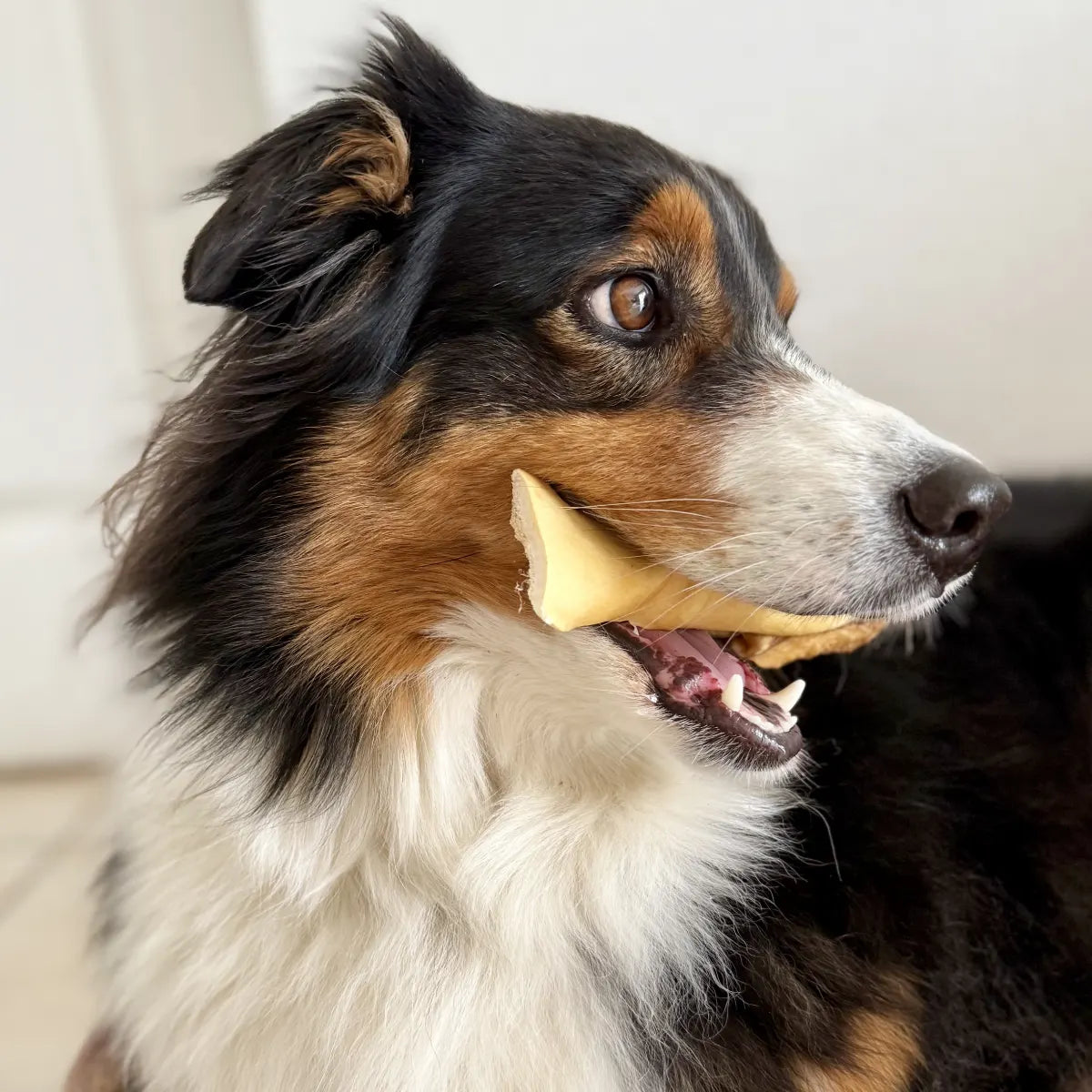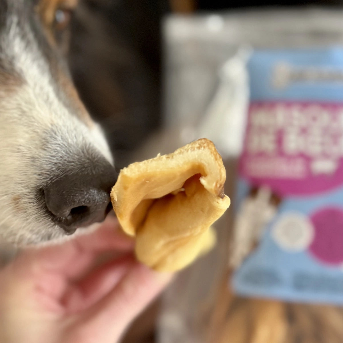 Le masque de bœuf Canigourmand favorise une bonne hygiène bucco-dentaire en réduisant le tartre et en nettoyant les dents.
