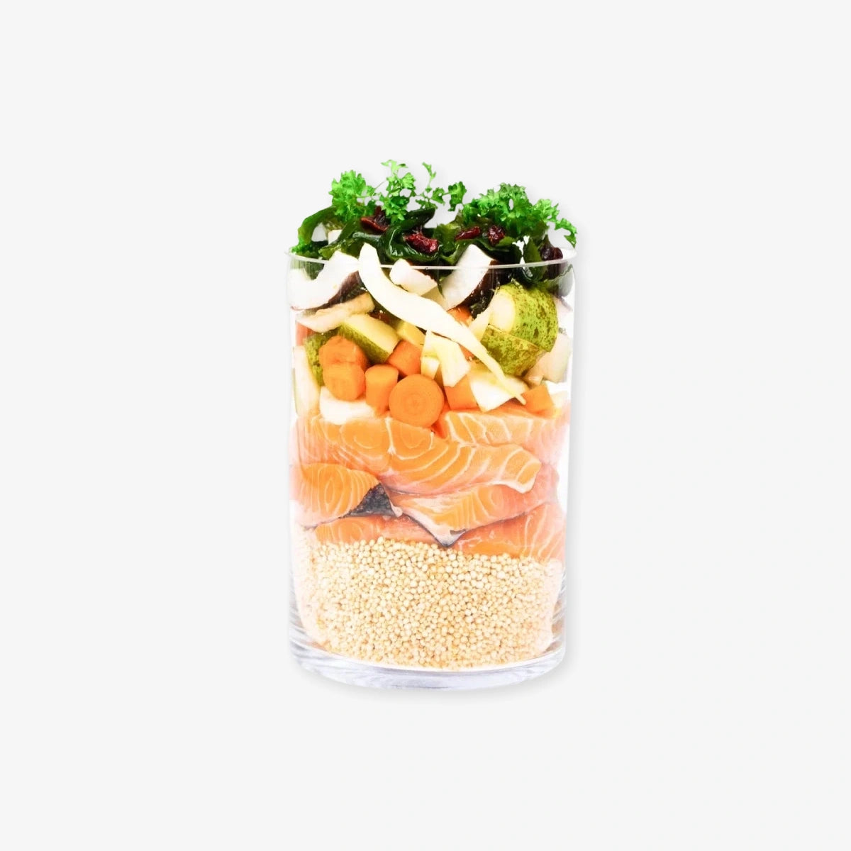 Le saumon sauvage, issu d'une pêche durable, est sélectionné pour éviter les élevages intensifs et garantir des filets sans antibiotiques ni additifs. La cuisson douce préserve les vitamines et minéraux essentiels pour une alimentation de qualité.