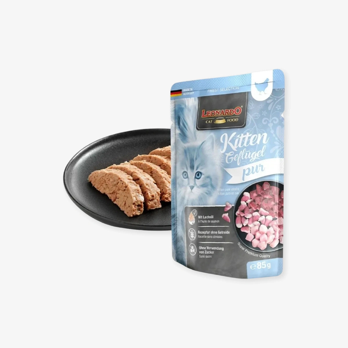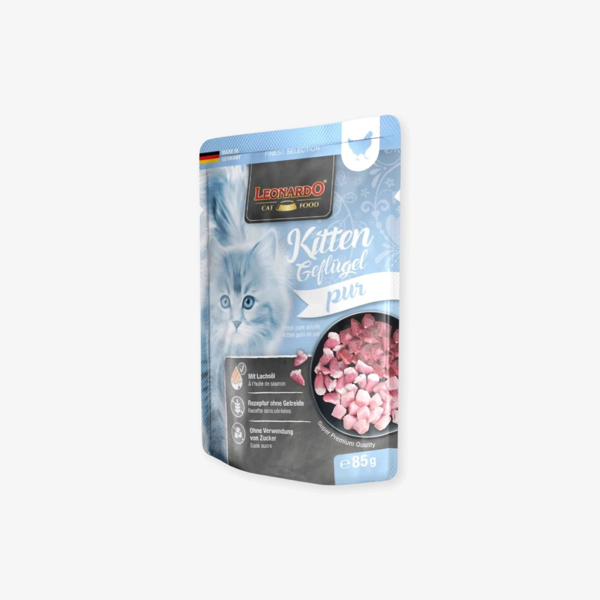 La pâtée pour chaton Leonardo volaille est une recette équilibrée et digeste, adaptée aux jeunes chats en pleine croissance.