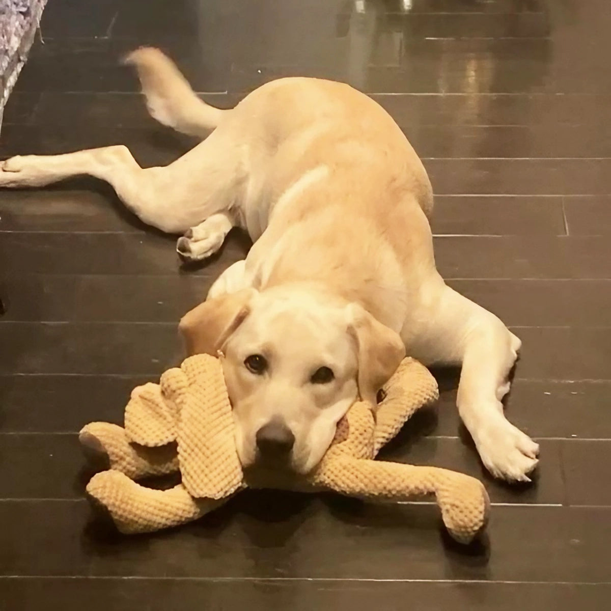 Conçue en tissu peluche ananas, sa texture est ultra douce. Du papier froissé y est inclus pour offrir une expérience de jeu stimulante. Avec ses 5 couineurs et sa doublure en nylon renforcé, ce doudou pour chiot est particulièrement résistant et durable.