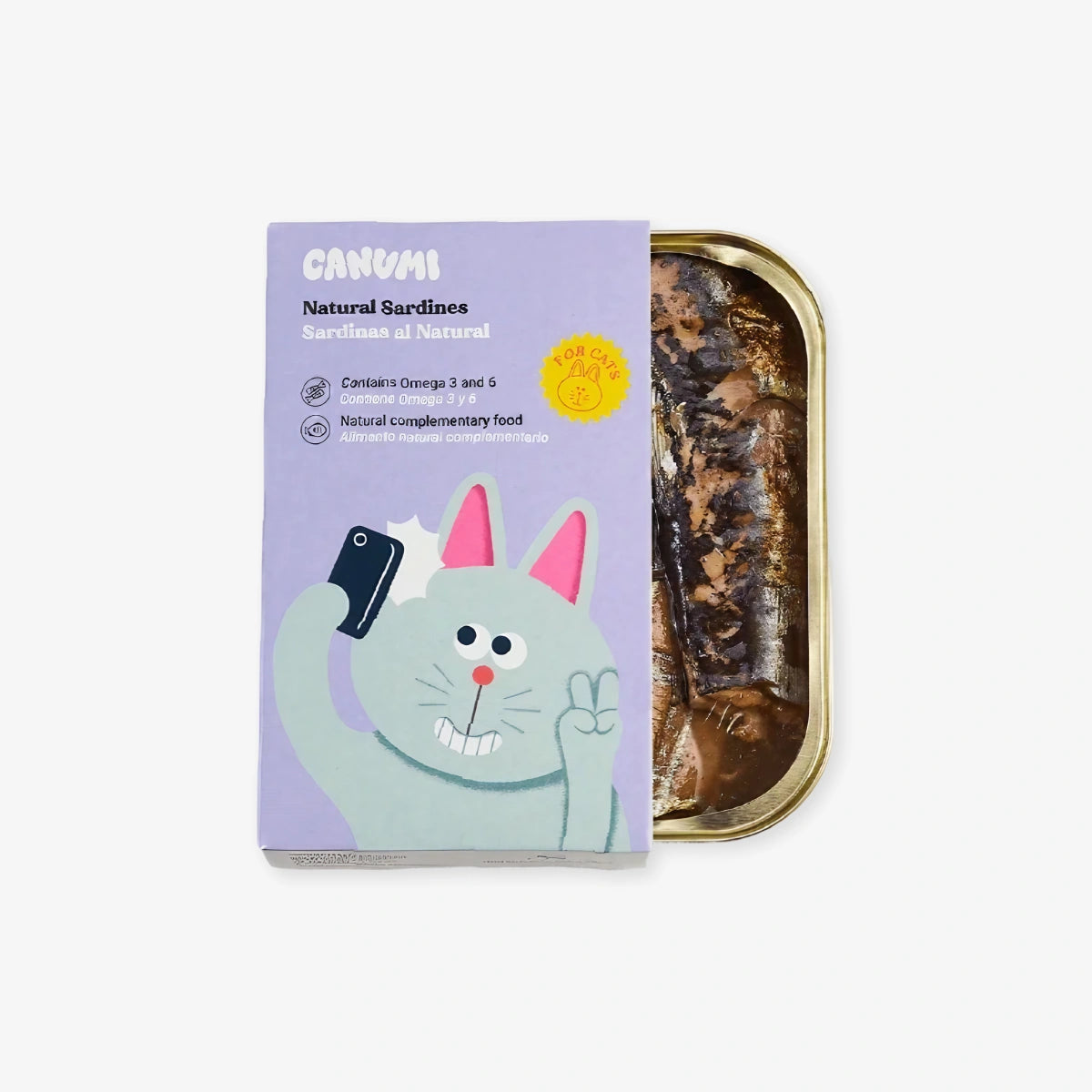 Les sardines de Canumi sont un snack gourmand pour chat. Elles sont cuites à la vapeur avec leur fine peau et sans sel ajouté. Ce produit ne contient ni conservateurs, ni colorants, ni additifs.
