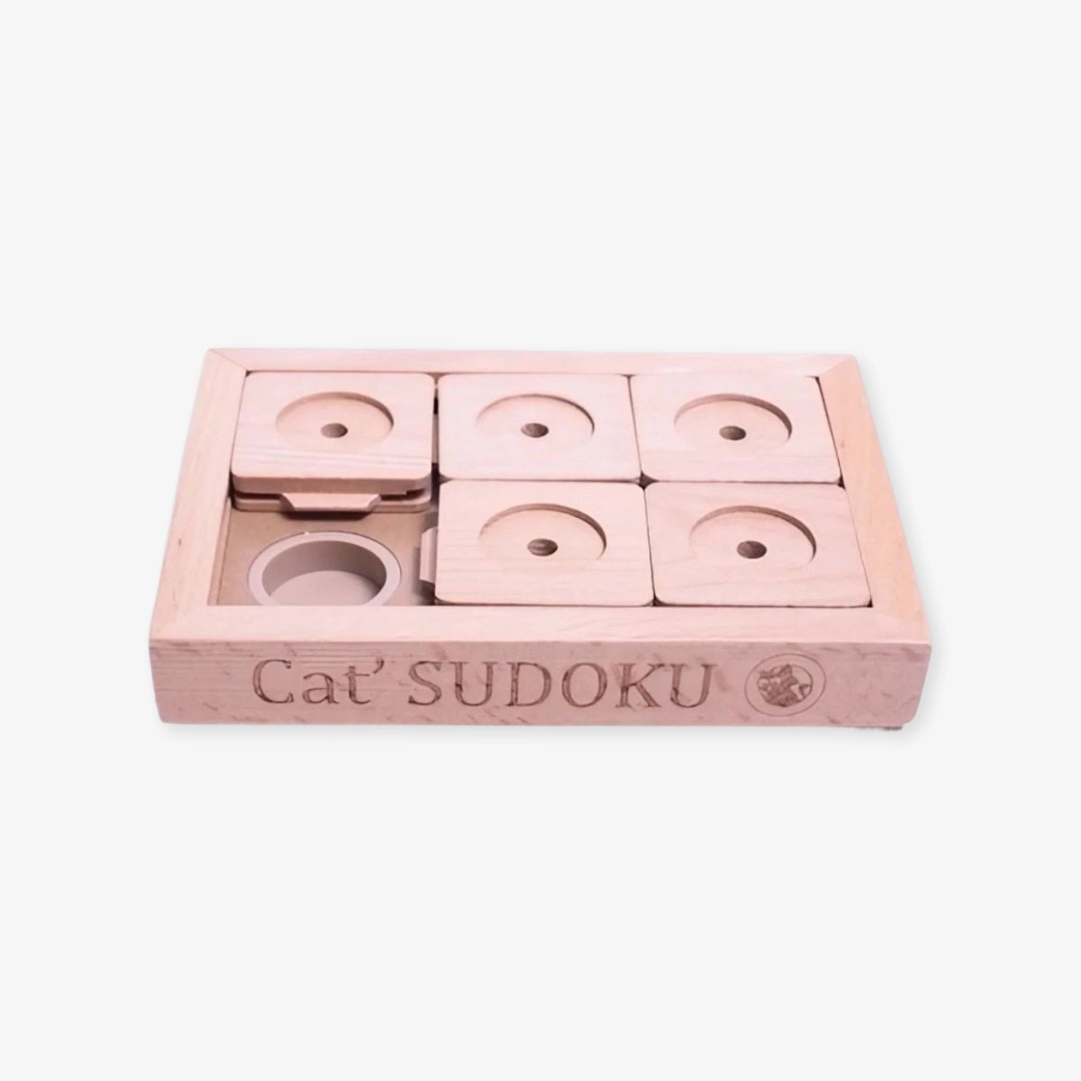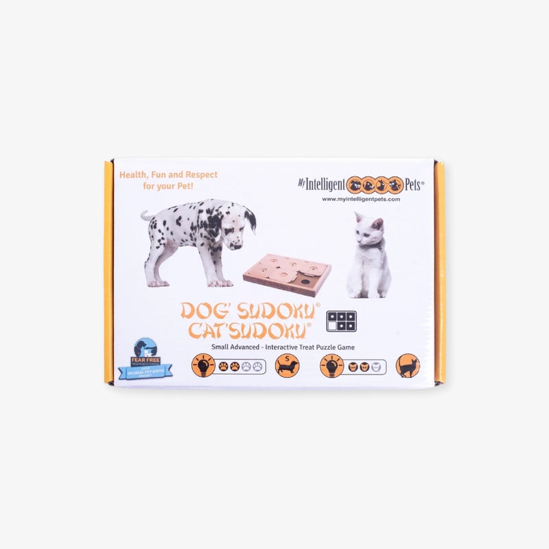 Le sudoku avancé pour chat de My Intelligent Pets est un jeu d’intelligence en bois. Avec ses pièces coulissantes et ses cachettes à friandises, il encourage le chat à utiliser son flair et sa logique pour trouver sa récompense.