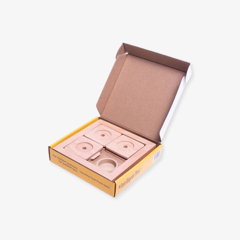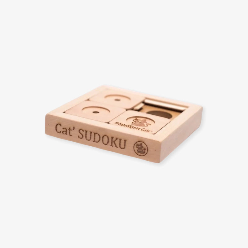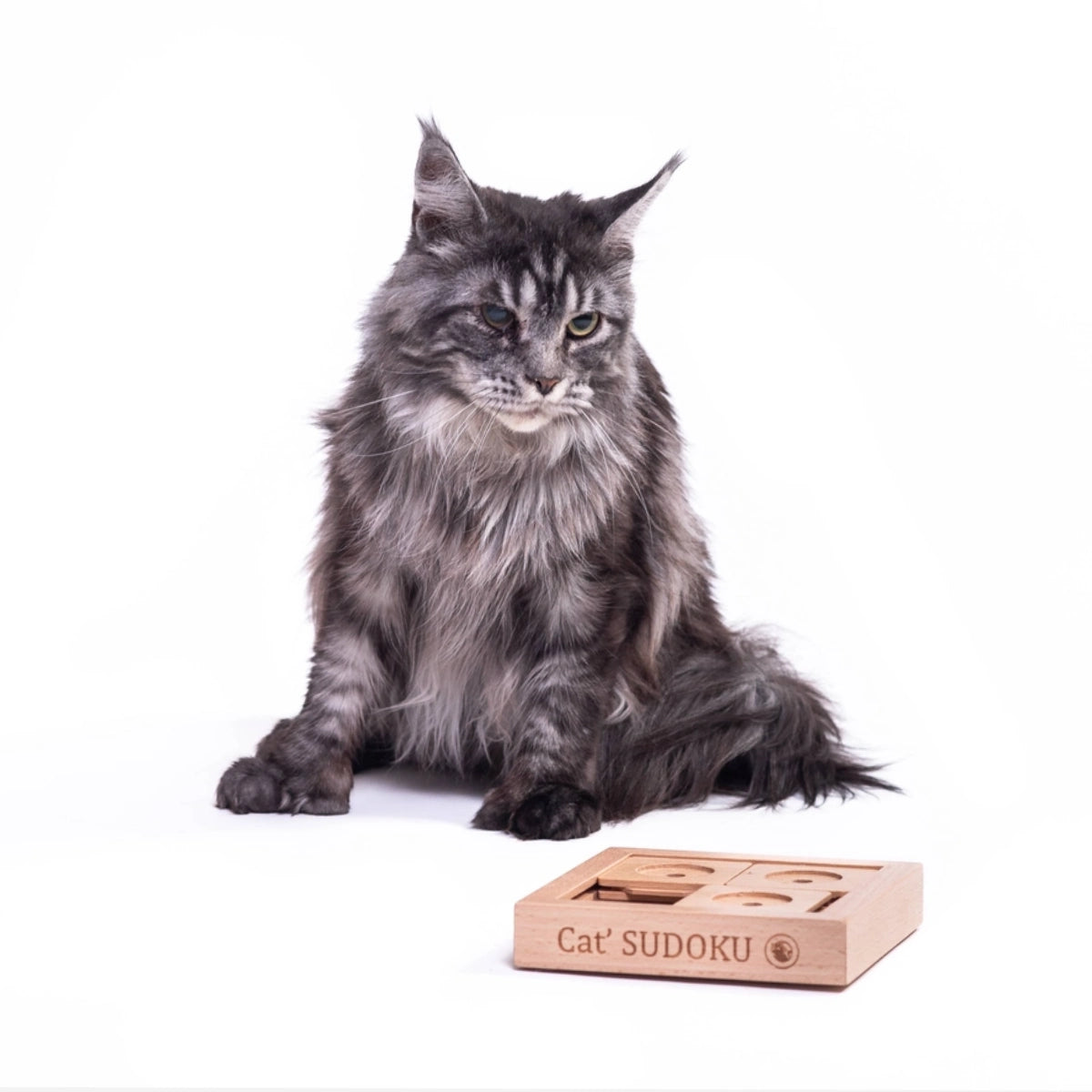 Le sudoku basic pour chat de My Intelligent Pets est un jeu d’intelligence en bois de niveau 1.