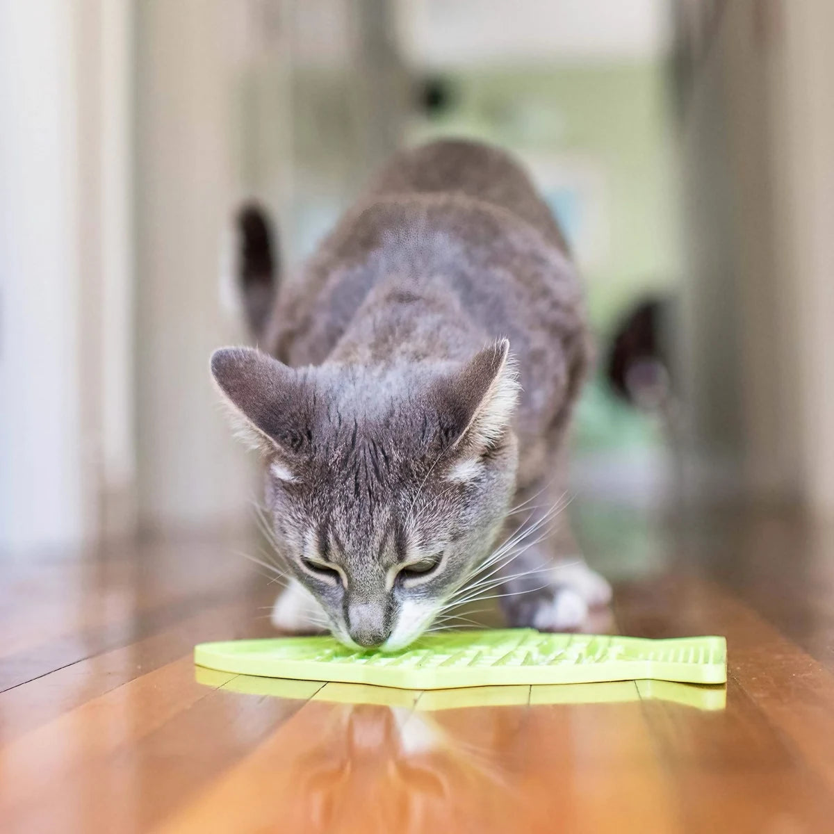 Le tapis de léchage capser de LickiMat possède une surface texturée qui permet d’étaler de la pâtée, du yaourt ou toute autre nourriture humide que votre chat aime.
