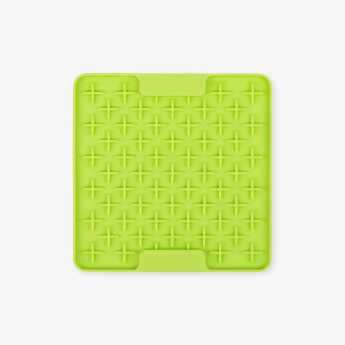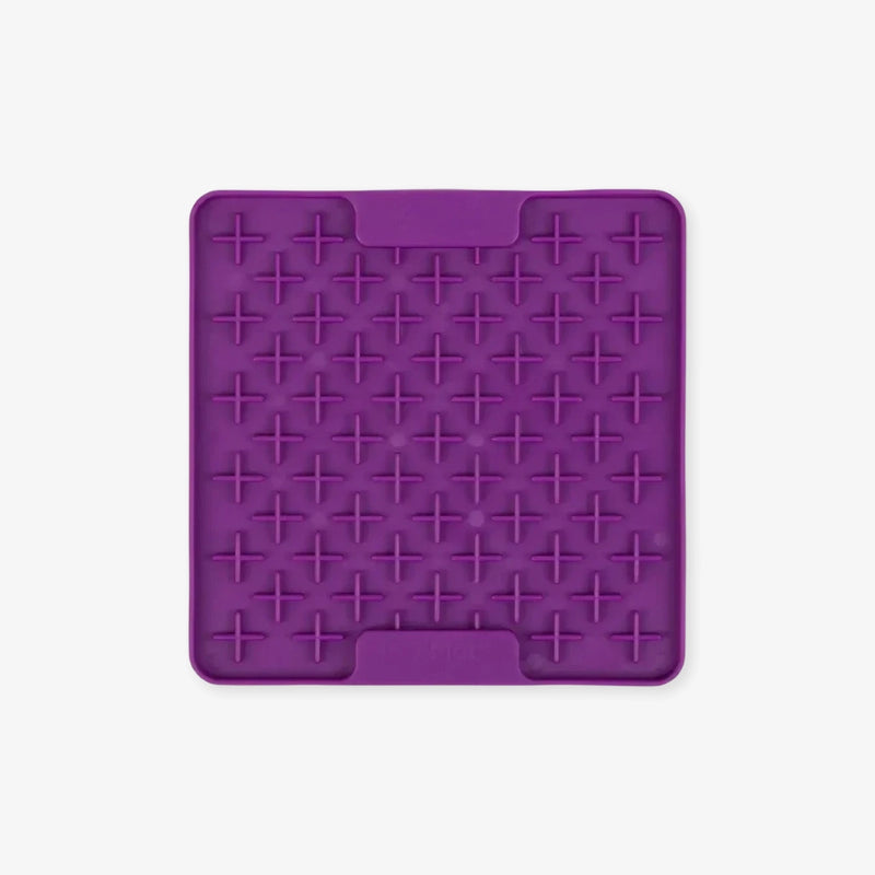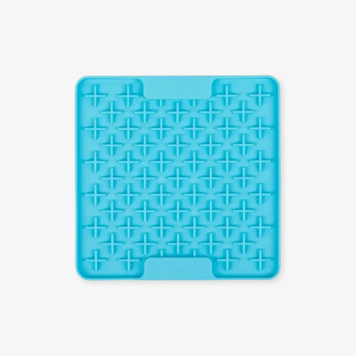 Le tapis de léchage Mini Buddy pour chat de Lickimat a un motif en croix et est en caoutchouc souple.
