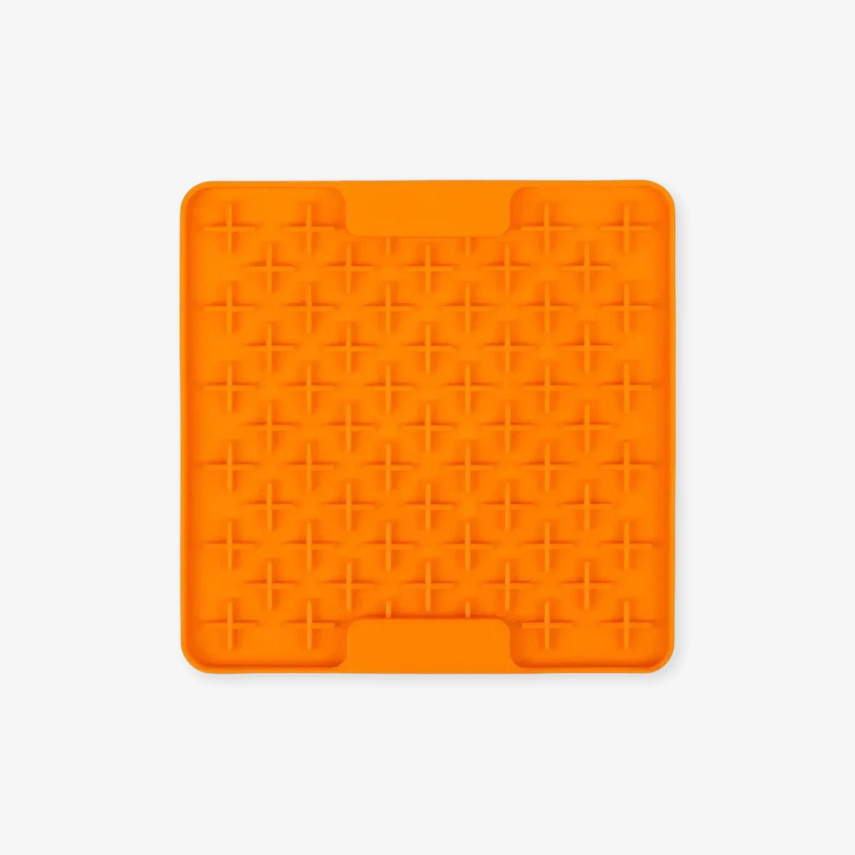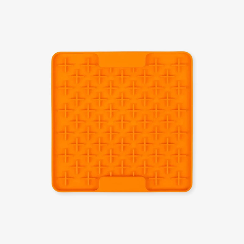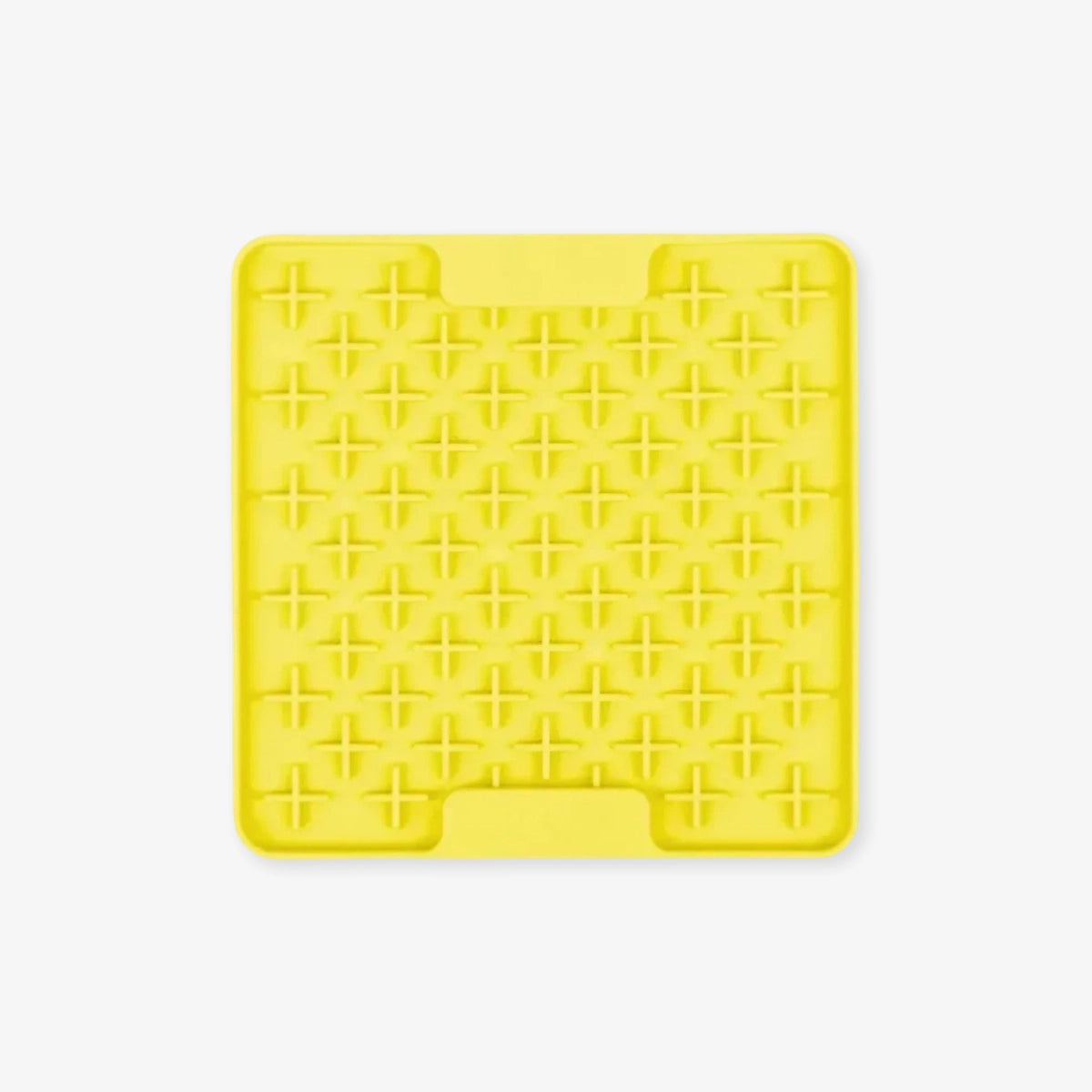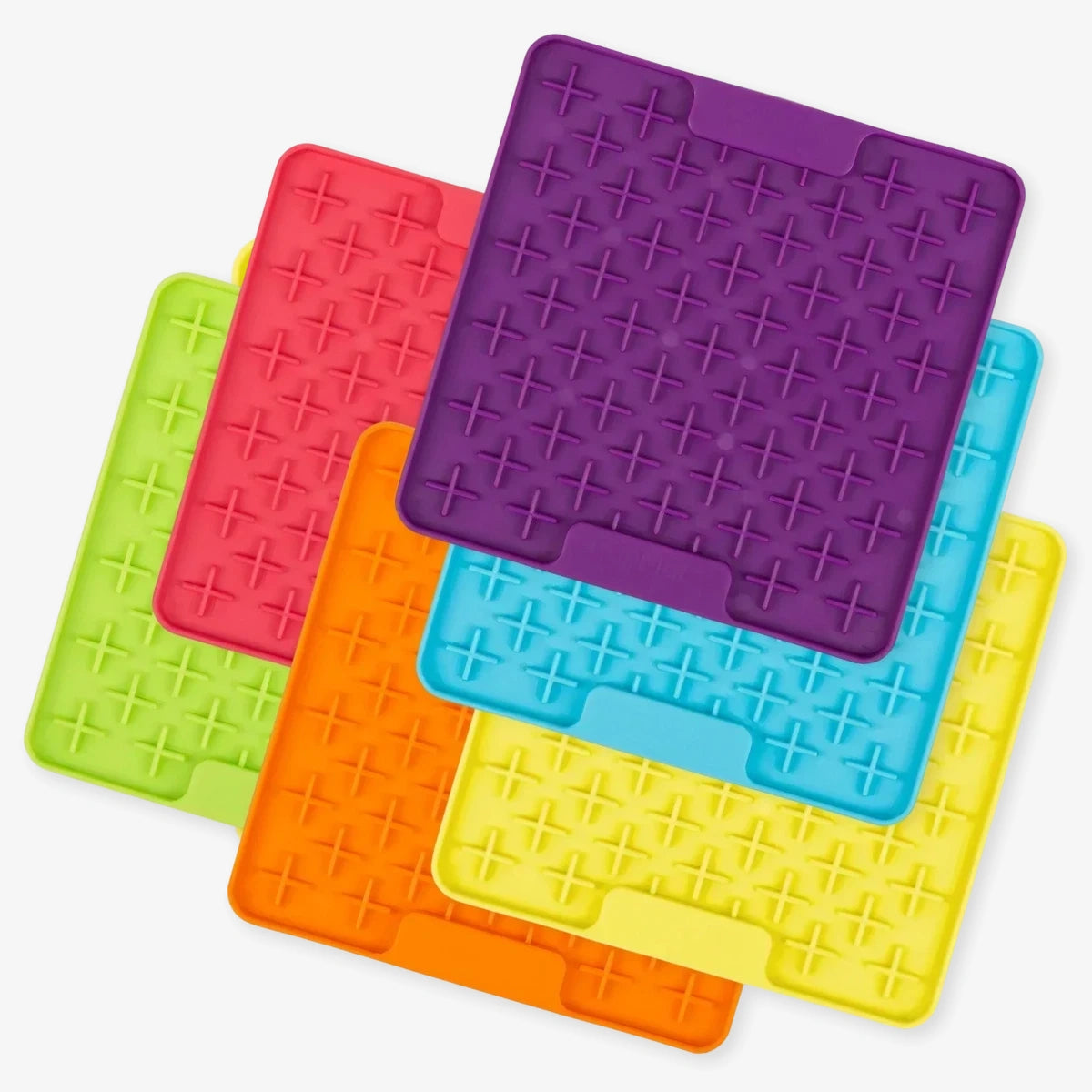 Le tapis de léchage Mini Buddy pour chat de Lickimat a un motif en croix et est en caoutchouc souple.