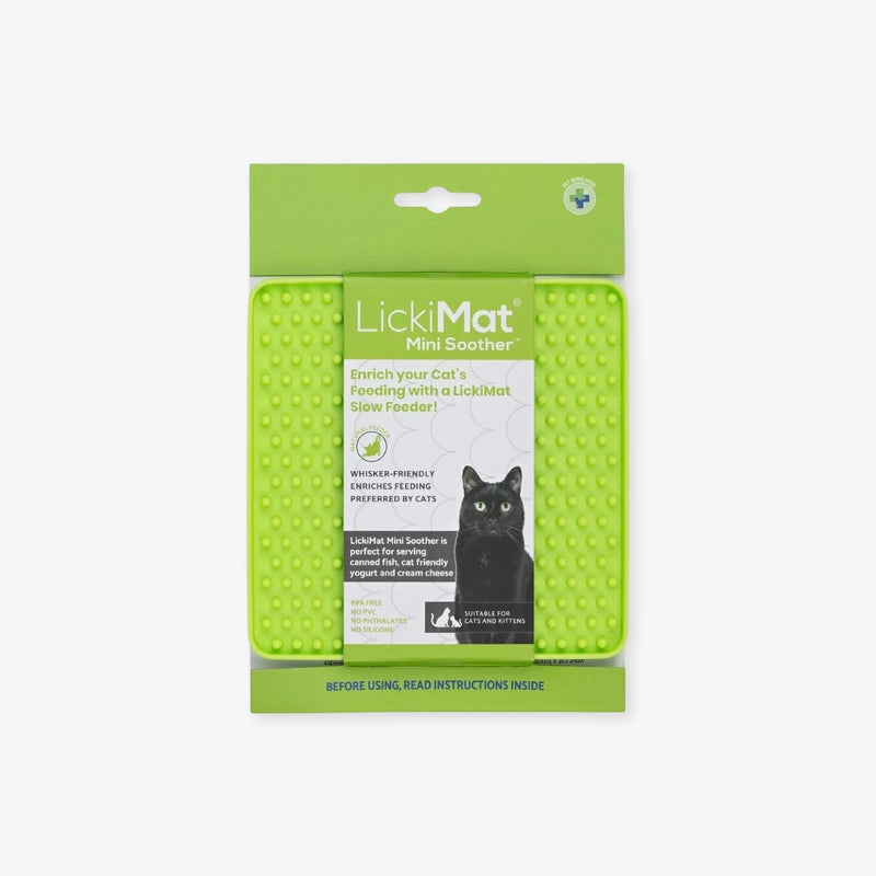 Le tapis de léchage Mini Soother de LickiMat permet d’y étaler de la pâtée, nourriture indispensable pour hydrater le chat. Ce tapis permet de l’occuper et qu’il mange plus lentement.