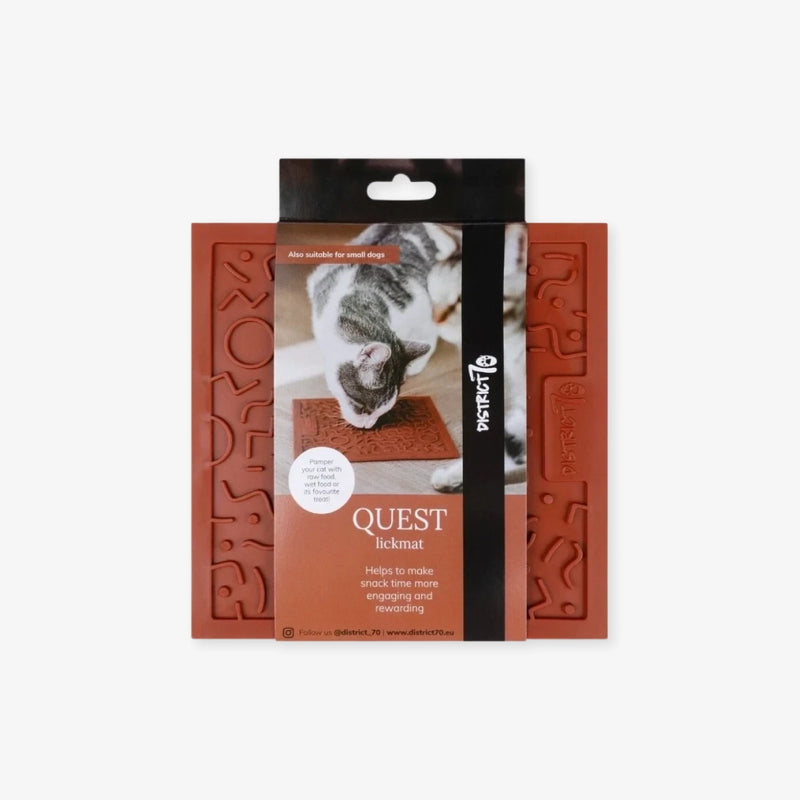 Le tapis de léchage pour chat QUEST de District 70 ralentit l’ingestion des chats gourmands et prolonge le temps du repas. Il favorise le calme, stimule le léchage et contribue à une bonne hygiène bucco-dentaire. Parfait pour y étaler de la pâtée.