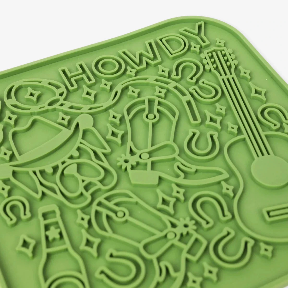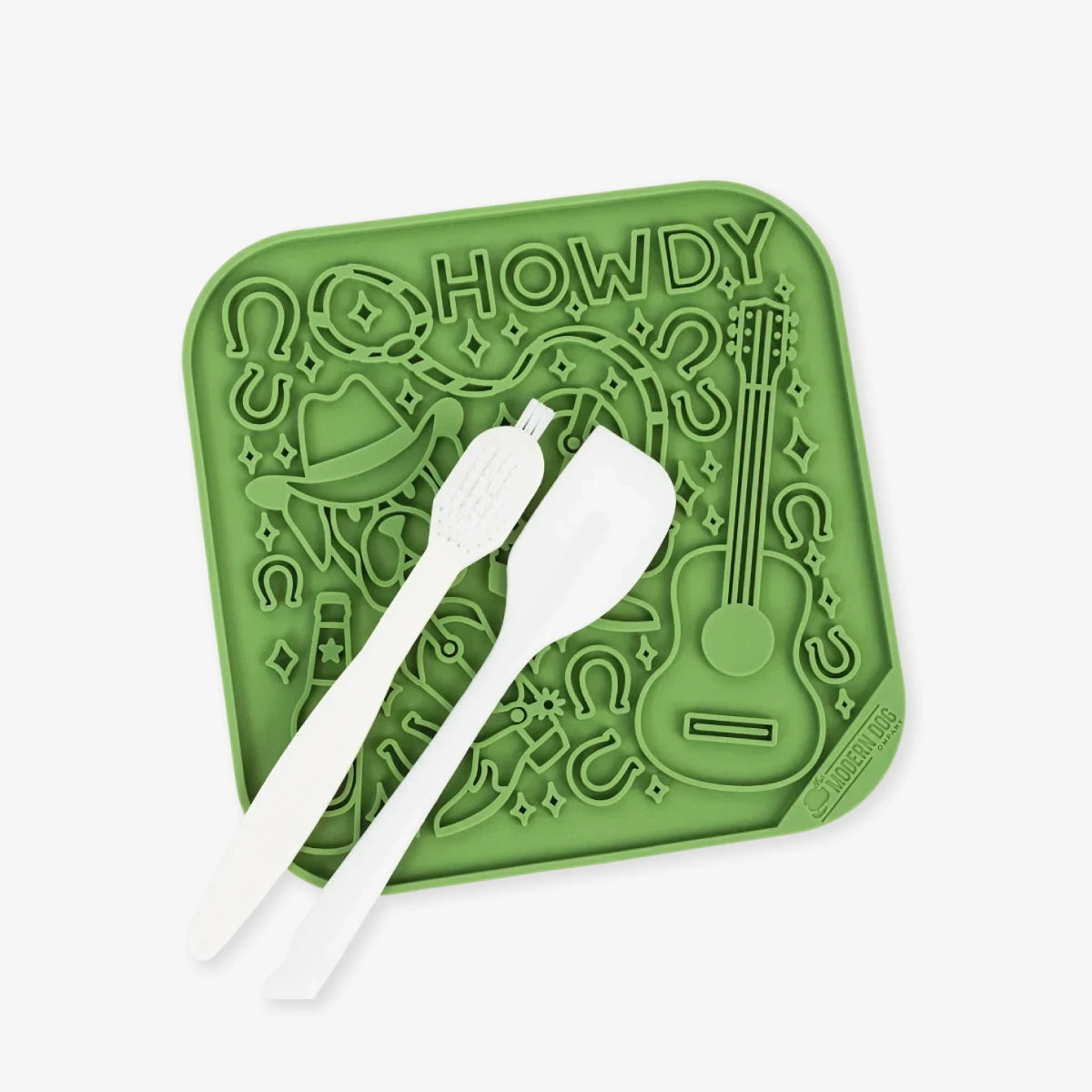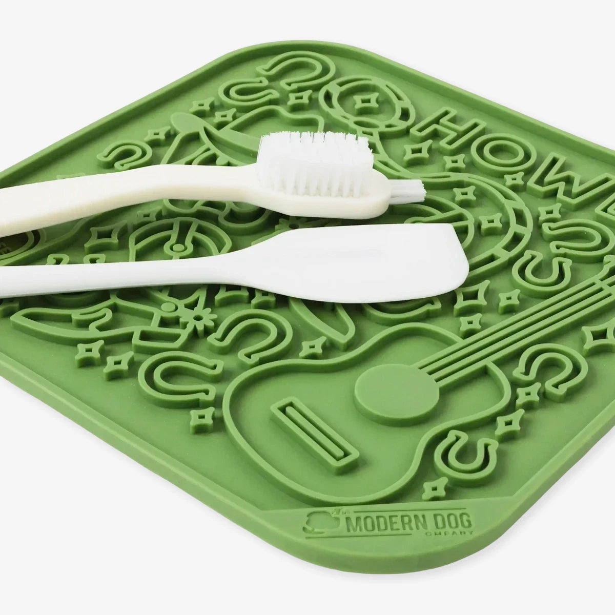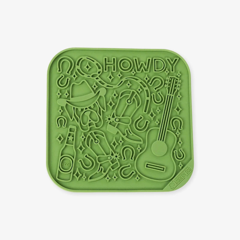 Le tapis de léchage pour chien Country de The Modern Dog Company s’inspire de l’univers de Nashville : guitares, bière fraîche et country. Son design aux cavités variées permet de ralentir l’ingestion et d’allonger le temps de léchage.