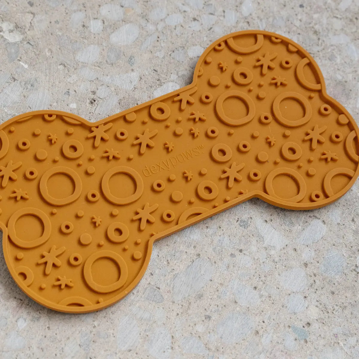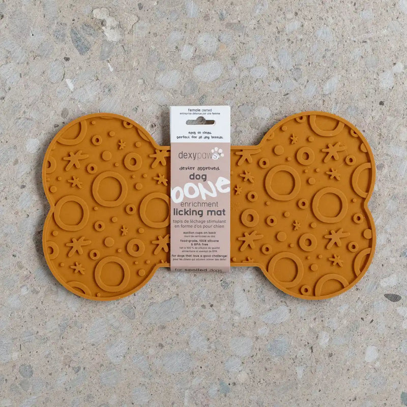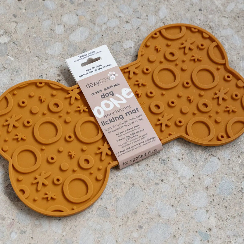 Le tapis de léchage en forme d’os de Dexypaws convient aux chiens moyens et grands. C’est une façon simple d’occuper son chien.