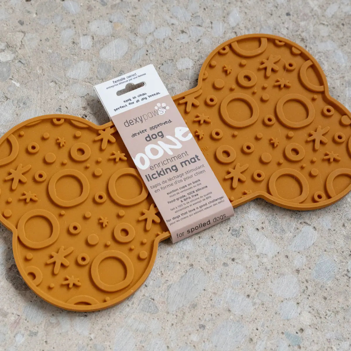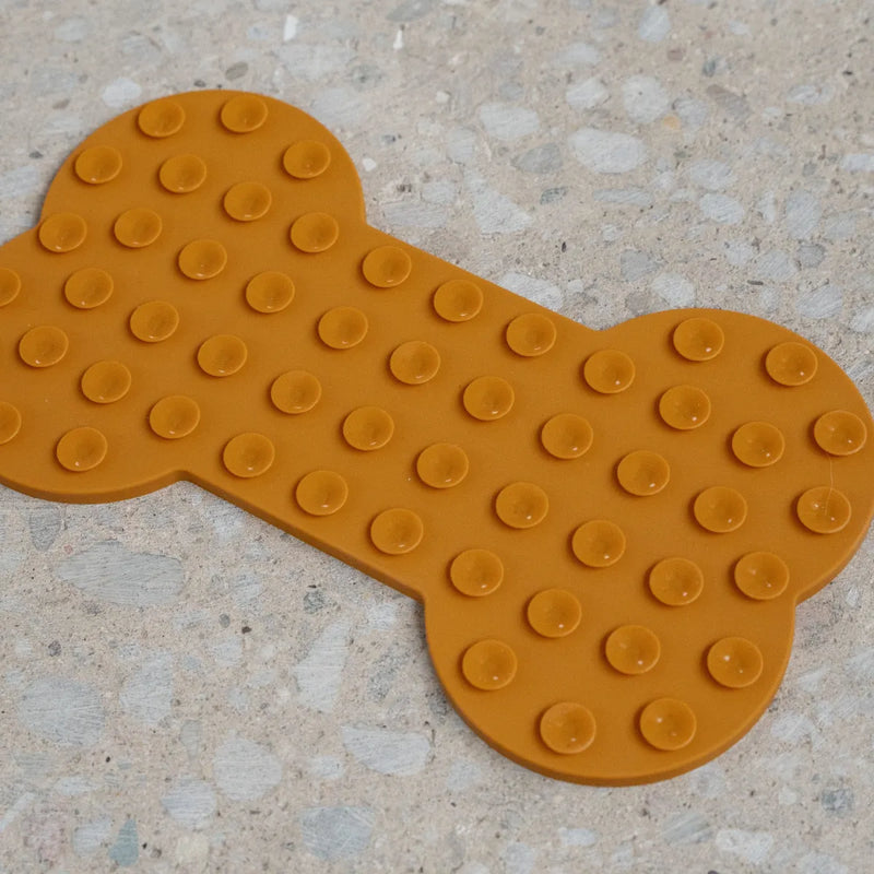 Ce tapis de léchage en forme d’os est fabriqué en silicone alimentaire, sans BPA.