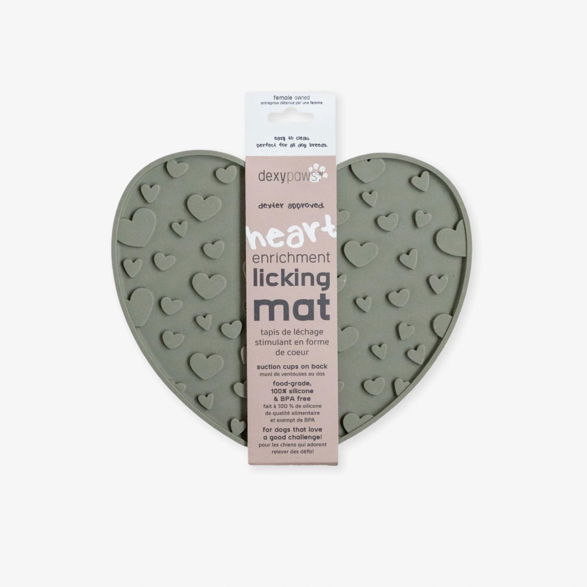 Suki est un tapis de léchage en silicone alimentaire, sans BPA, souple et résistant de Dexypaws.