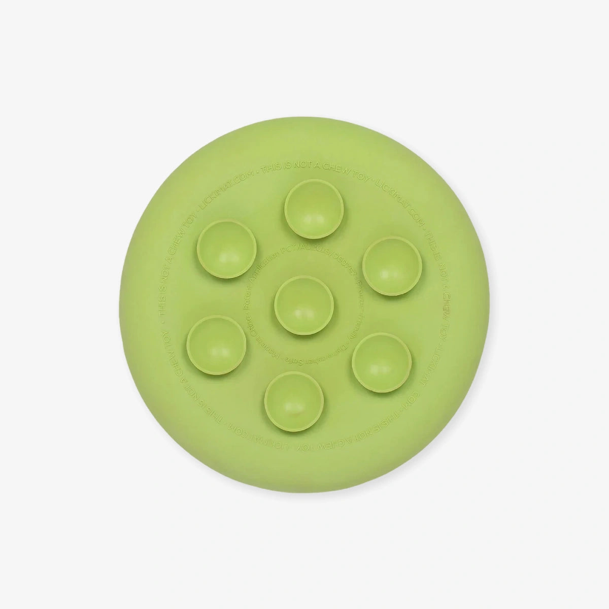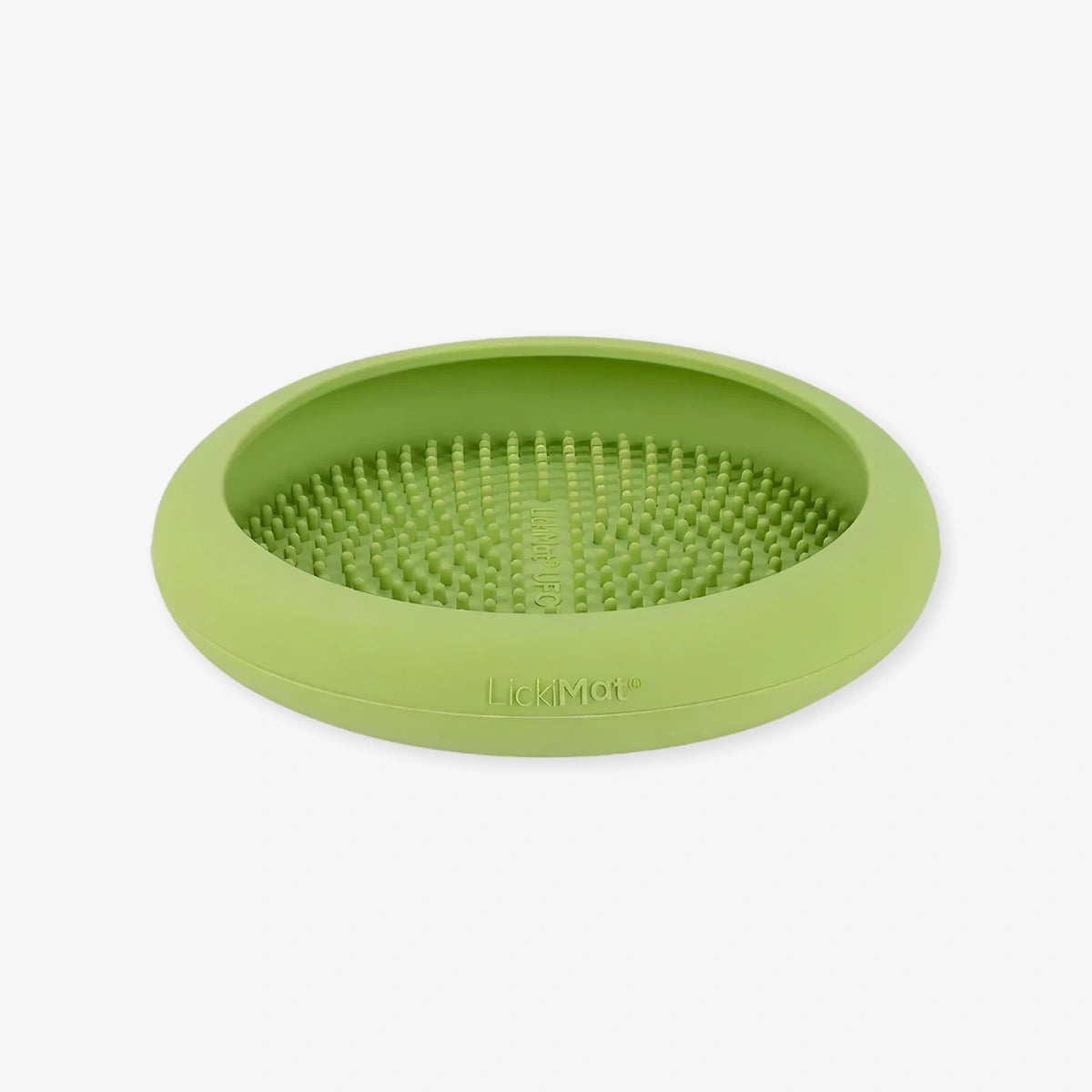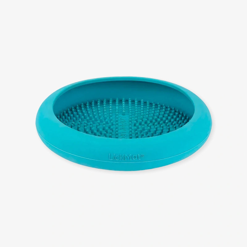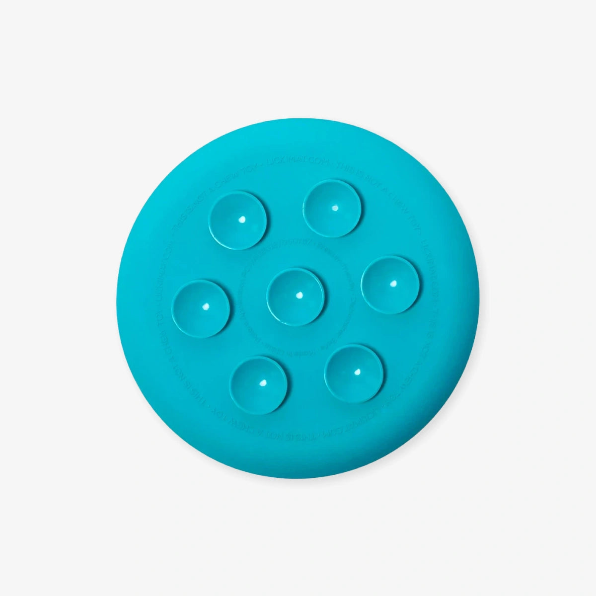 Le Lickimat UFO est un tapis de léchage rond ayant de larges rebords. Il dispose de sept ventouses permettant de le fixer sur toutes les surfaces, qu’elles soient à l’horizontal ou à la vertical.