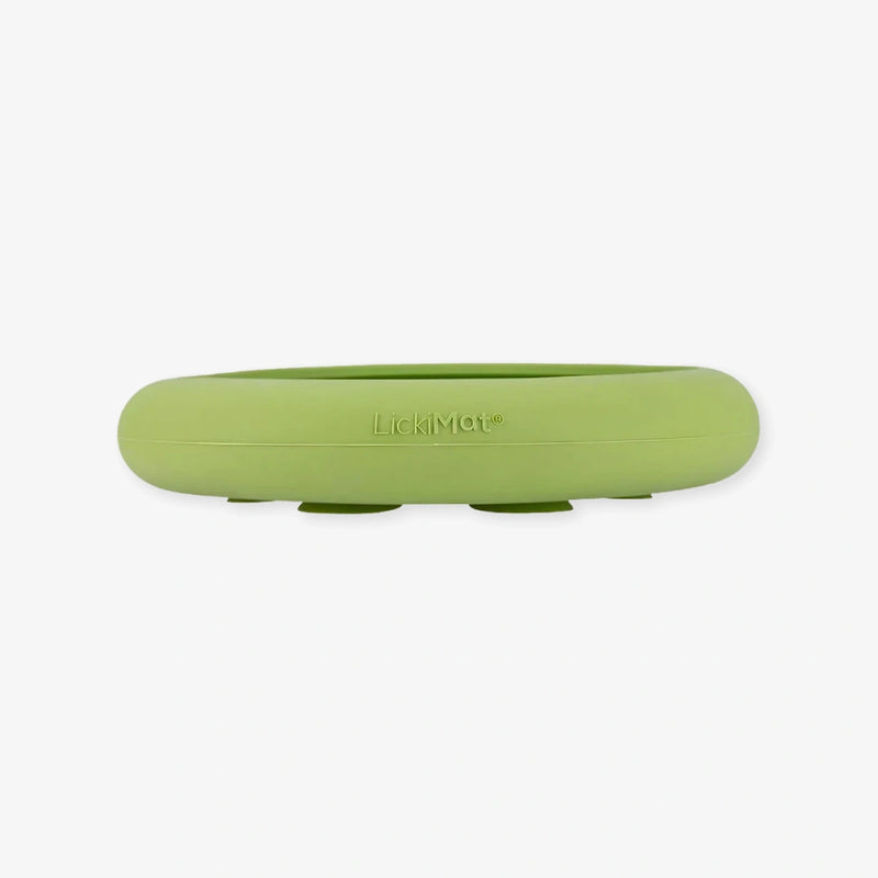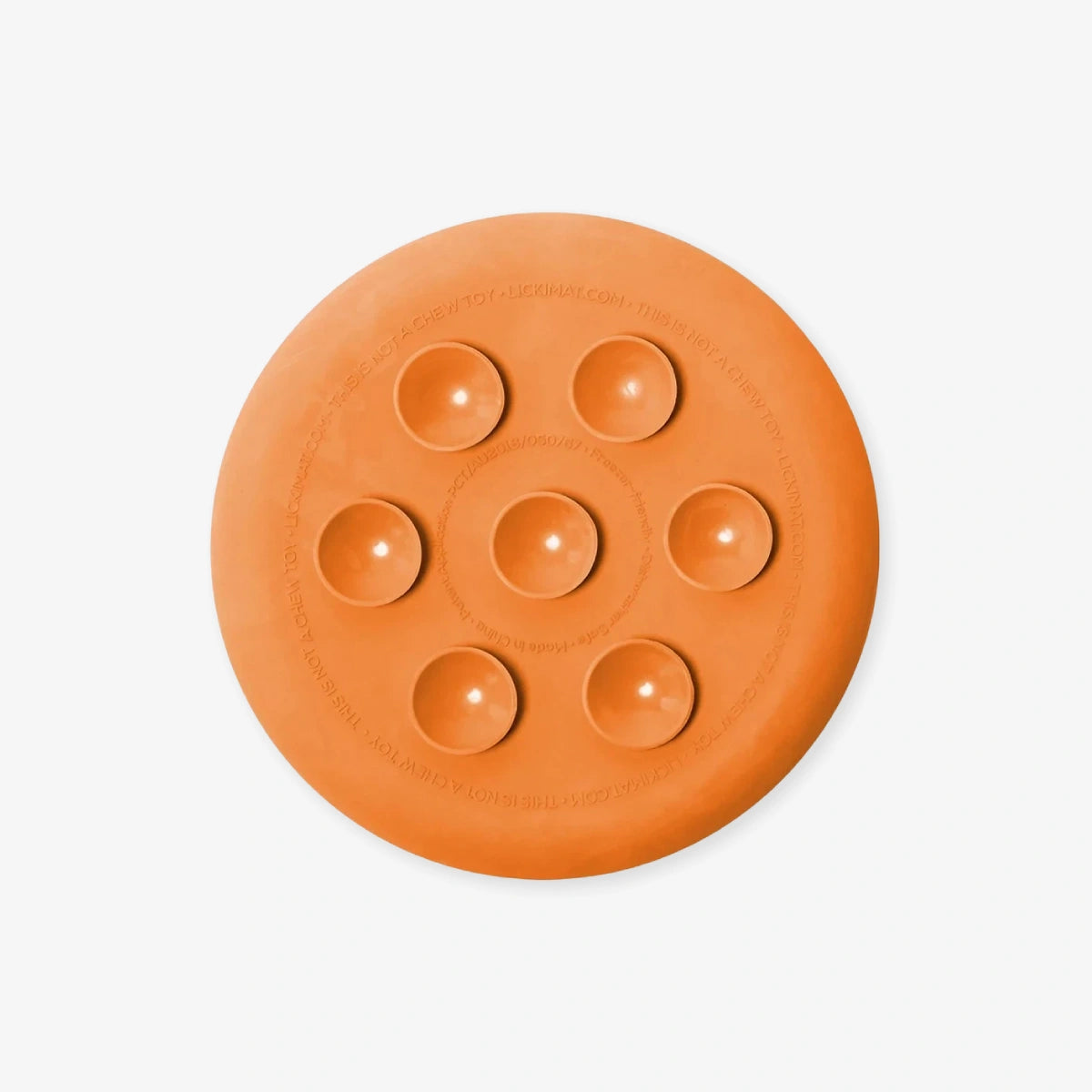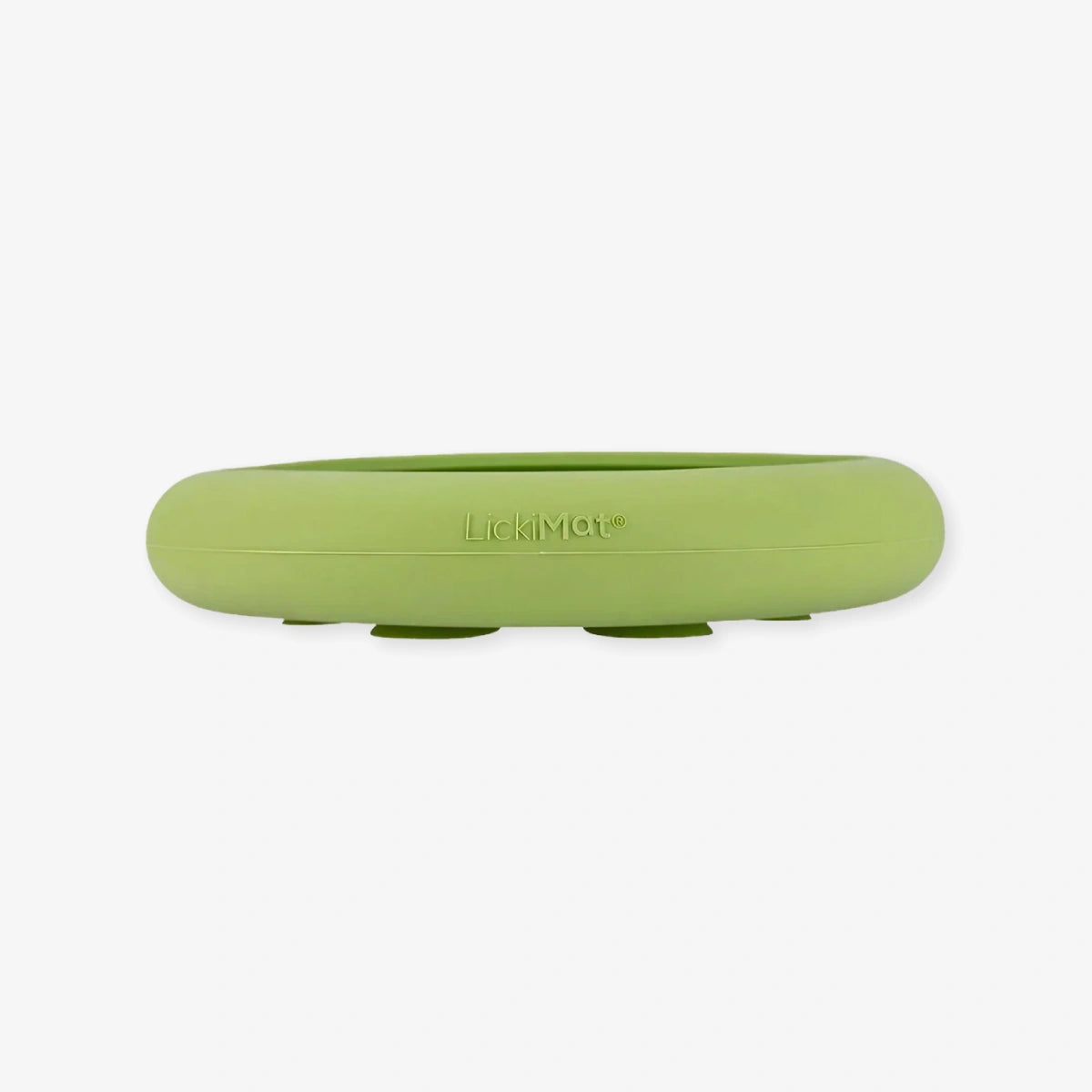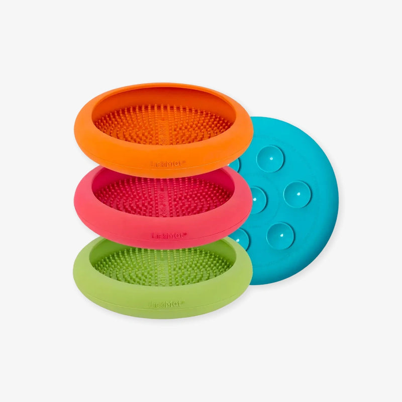 Le Lickimat UFO est un tapis de léchage rond ayant de larges rebords. Il dispose de sept ventouses permettant de le fixer sur toutes les surfaces, qu’elles soient à l’horizontal ou à la vertical.
