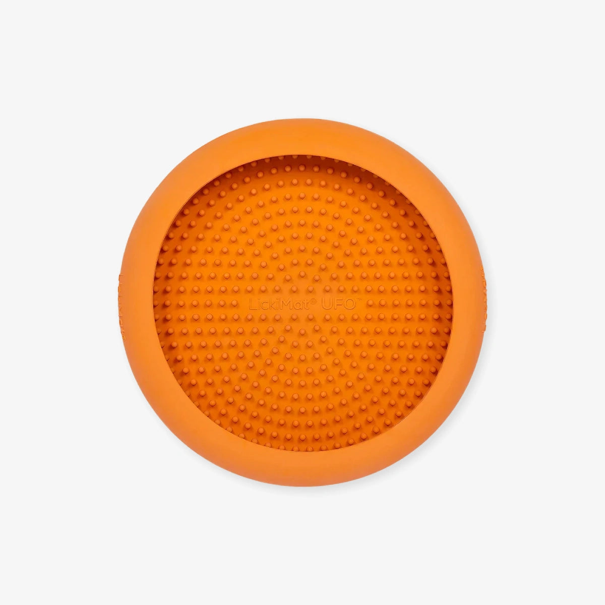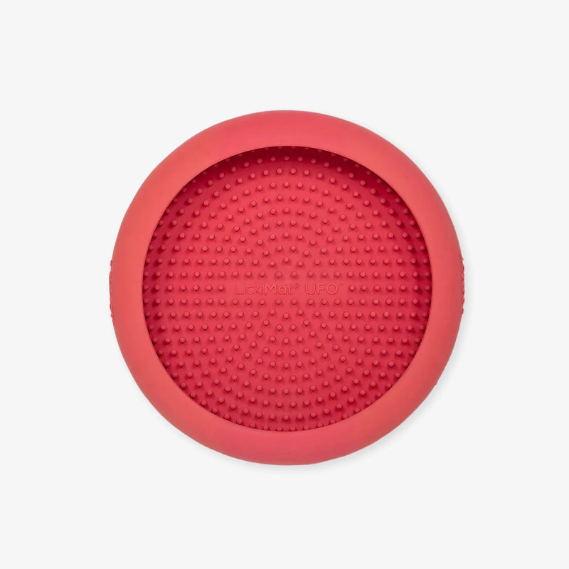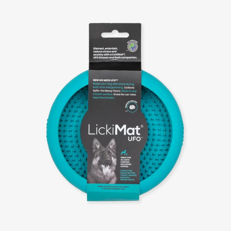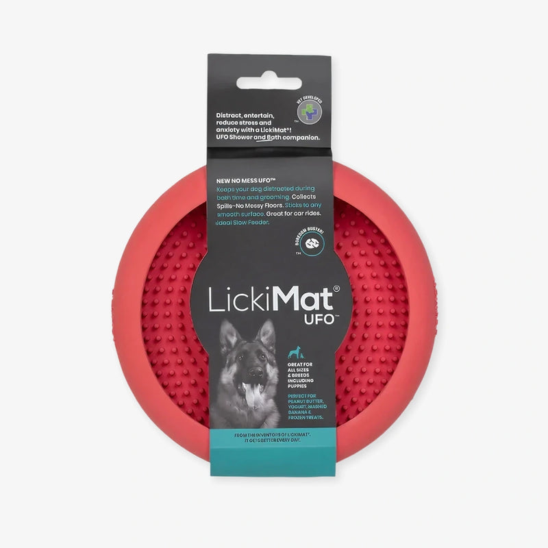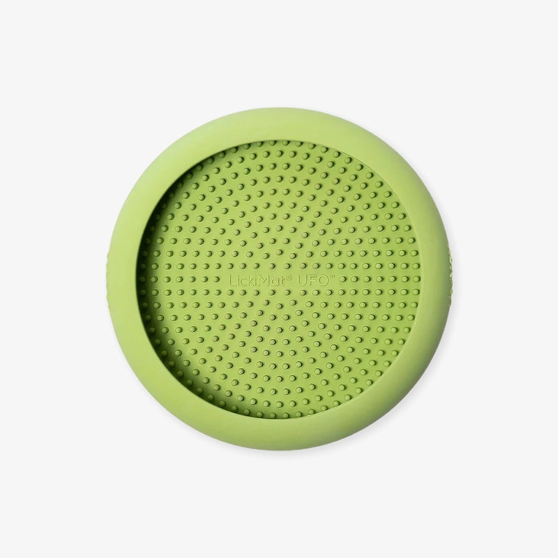 Le Lickimat UFO est un jouet d'enrichissement pour chien sur lequel on étale de la nourriture humide tartinable. Il est fabriqué à partir de caoutchouc TPR de qualité alimentaire (un matériau naturel, non toxique, sans BPA, phtalate, ni latex).