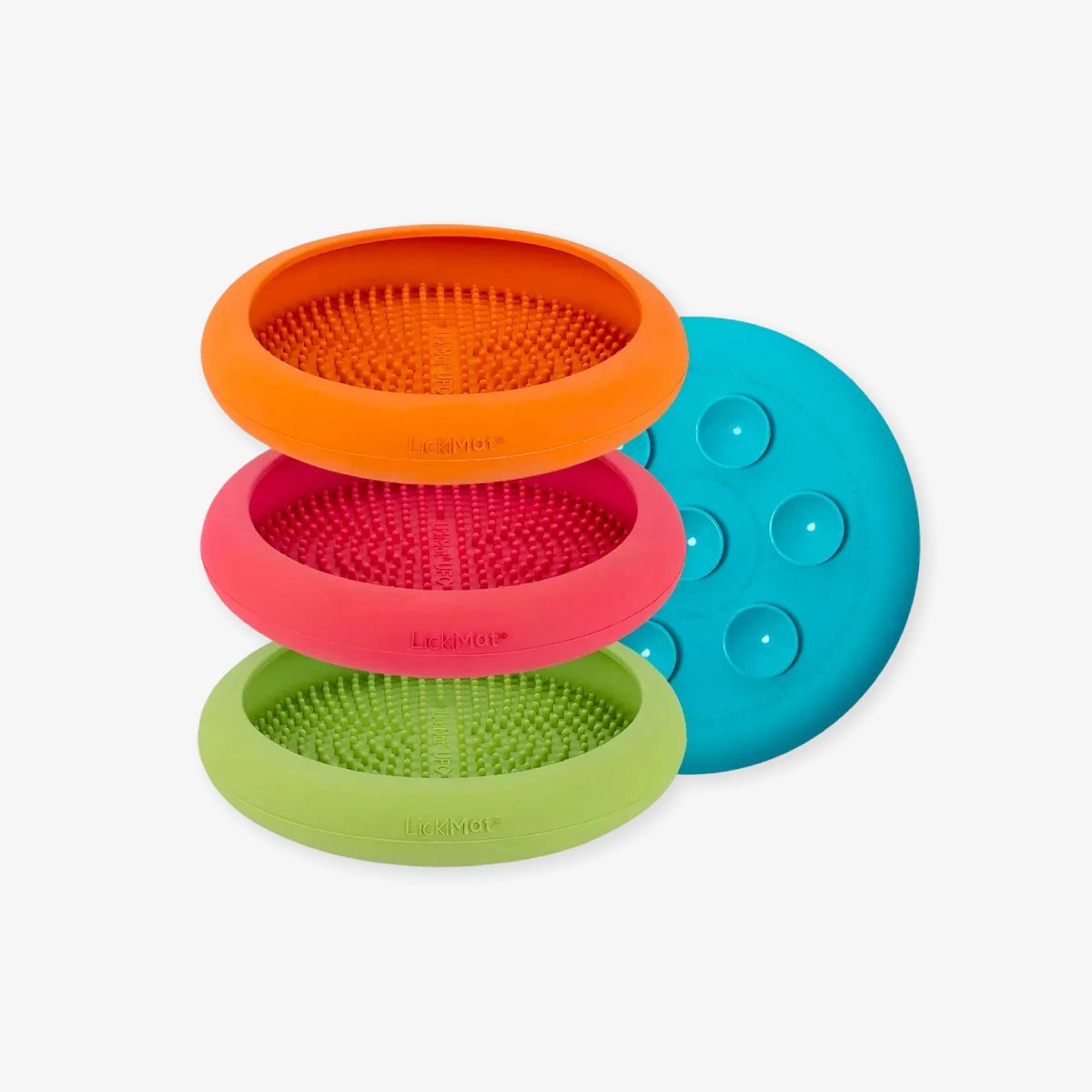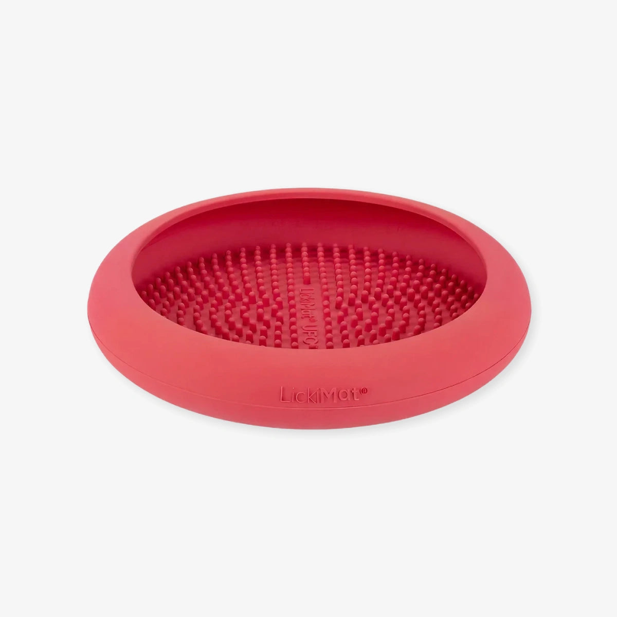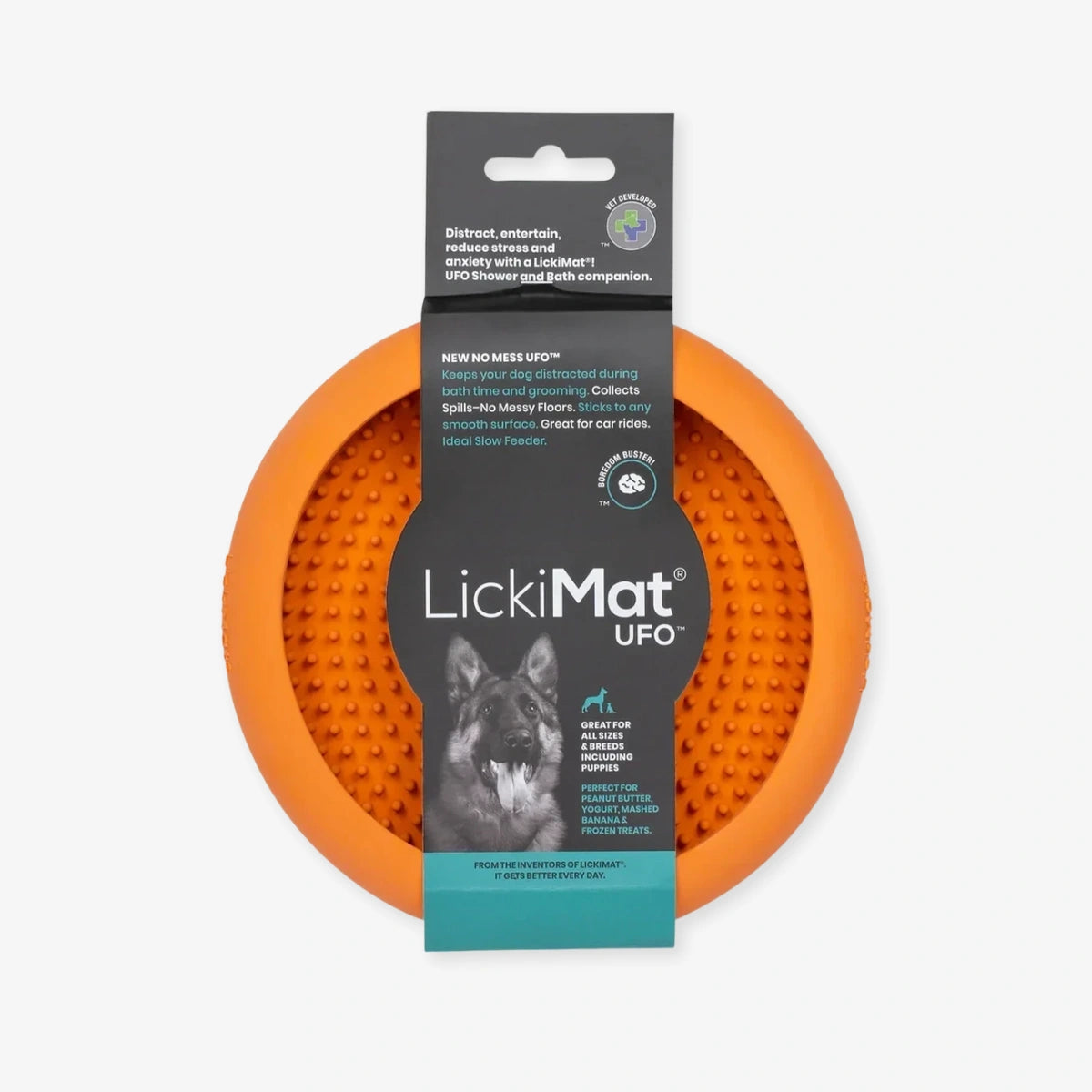 Le Lickimat UFO est un jouet d'enrichissement pour chien sur lequel on étale de la nourriture humide tartinable. Il est fabriqué à partir de caoutchouc TPR de qualité alimentaire (un matériau naturel, non toxique, sans BPA, phtalate, ni latex).