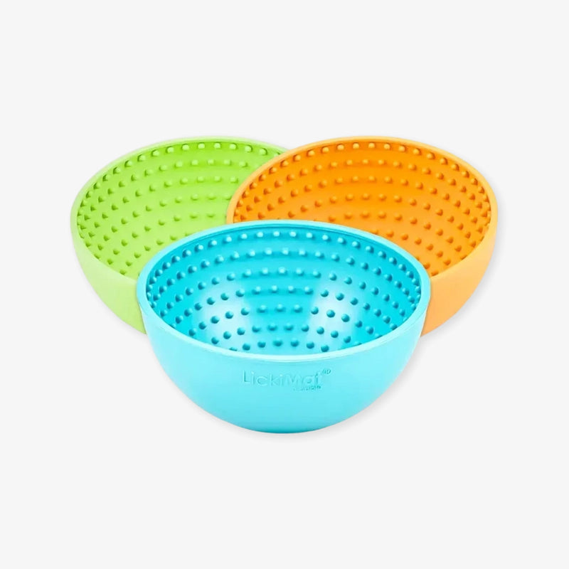 Le bol de léchage pour chien Lickimat Wobble a une forme en demi-sphère. Cela rend plus difficile pour le chien d’atteindre la nourriture en raison de son mouvement d’oscillation, provoqué par les coups de langue.