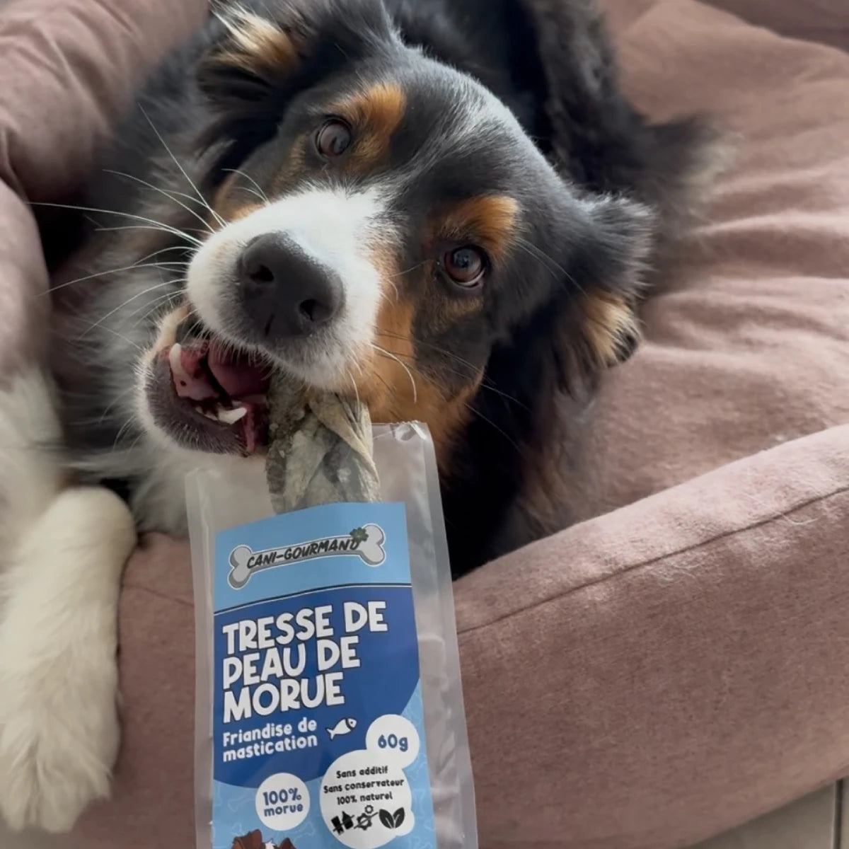 La tresse de morue de Canigourmand est une friandise de mastication pour les chiens qui aiment le poisson. Composée à 100 % de peau de morue, elle est riche en protéines (83 %) et faible en matières grasses (3,7 %).